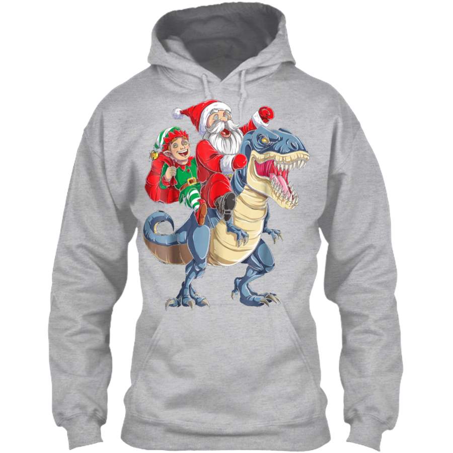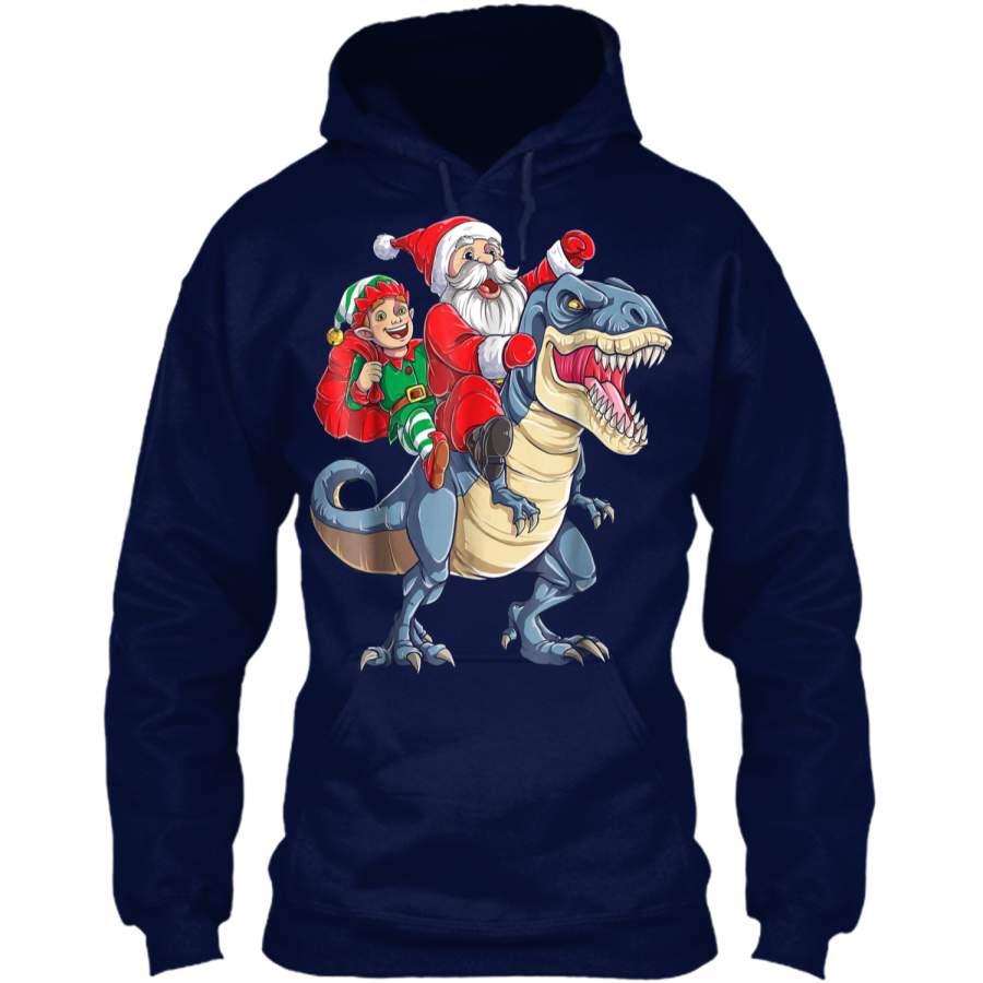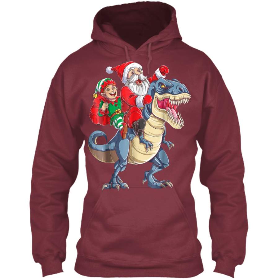 Elf Santa Dinosaur T rex Christmas kids Boys Gifts Pullover Hoodie 8 oz