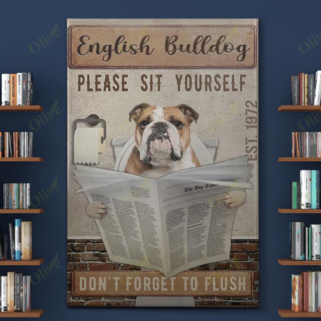 English Bulldog Please Sit Yourself Portrait Poster & Canvas Gift For Dog Lovers Wall Decor Wall Art Visual Art
