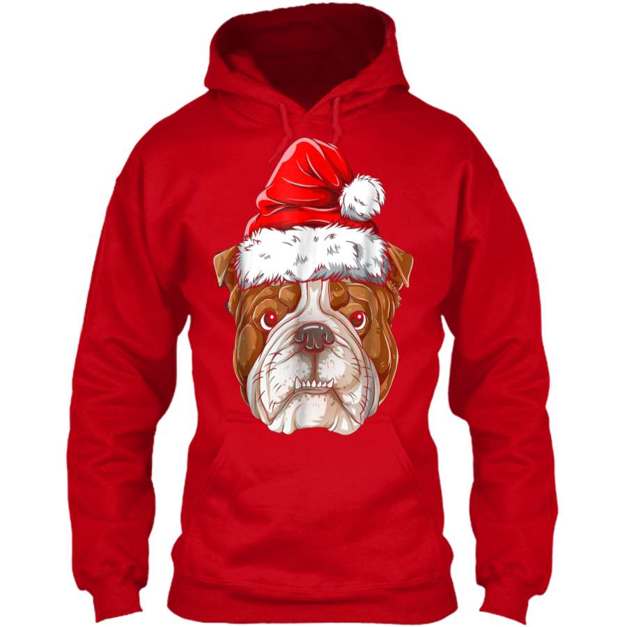 English Bulldog Santa Christmas Kids Boys Girls Gift Pullover Hoodie 8 oz