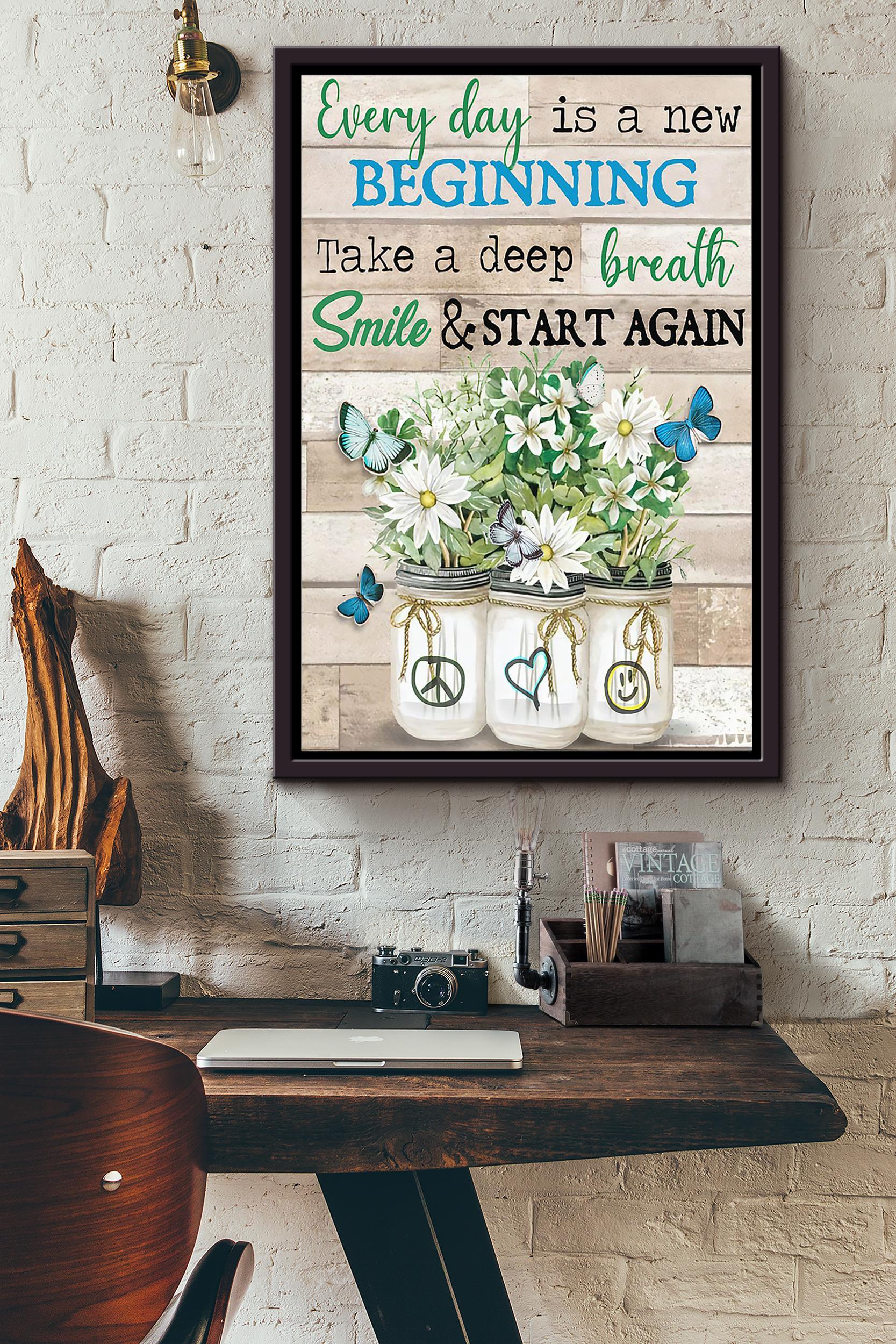 Everyday Is A New Beginning Take A Deep Breath Smile And Start Again Flower Poster Framed Matte Canvas