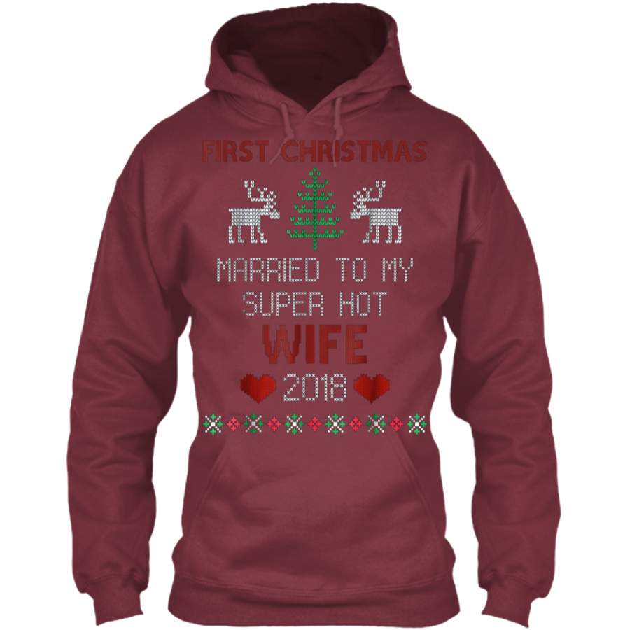 First Christmas Married To My Super Hot Wife 2018 Pullover Hoodie 8 oz