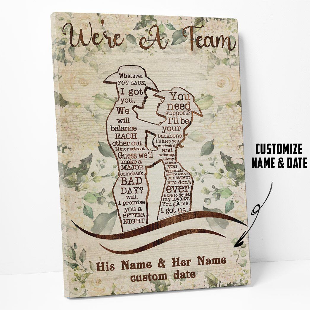 Flowermoonz 3D Cowboy Couple We Are A Team Custom Name Custom Date Canvas