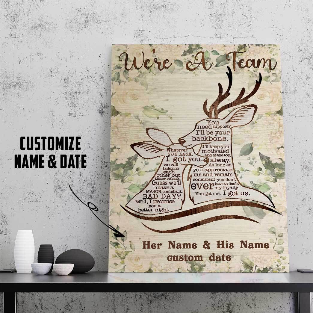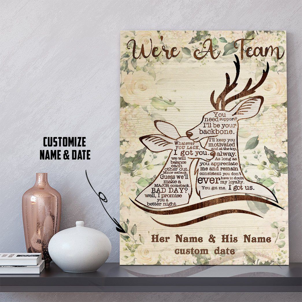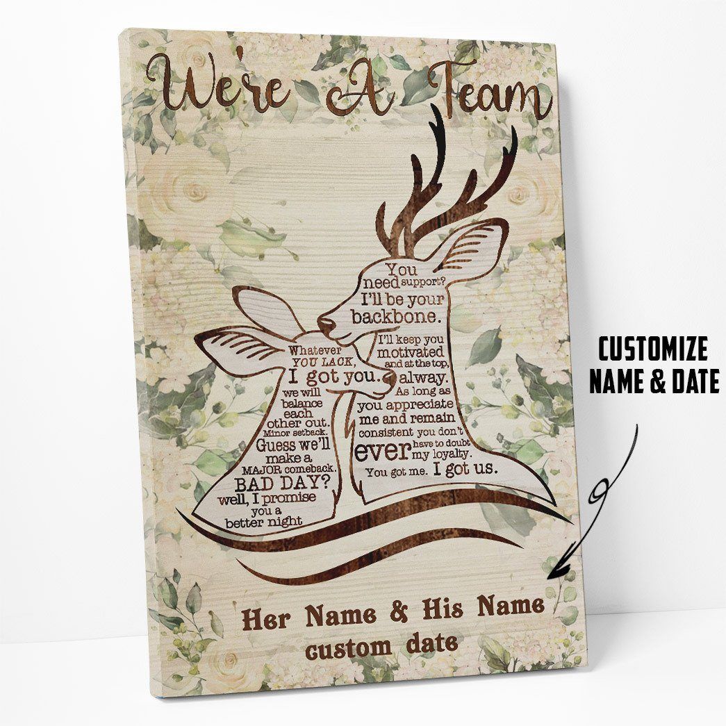 Flowermoonz 3D Deer Couple We Are A Team Custom Name Date Canvas
