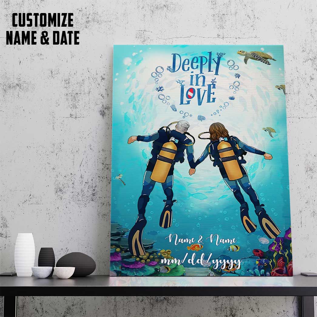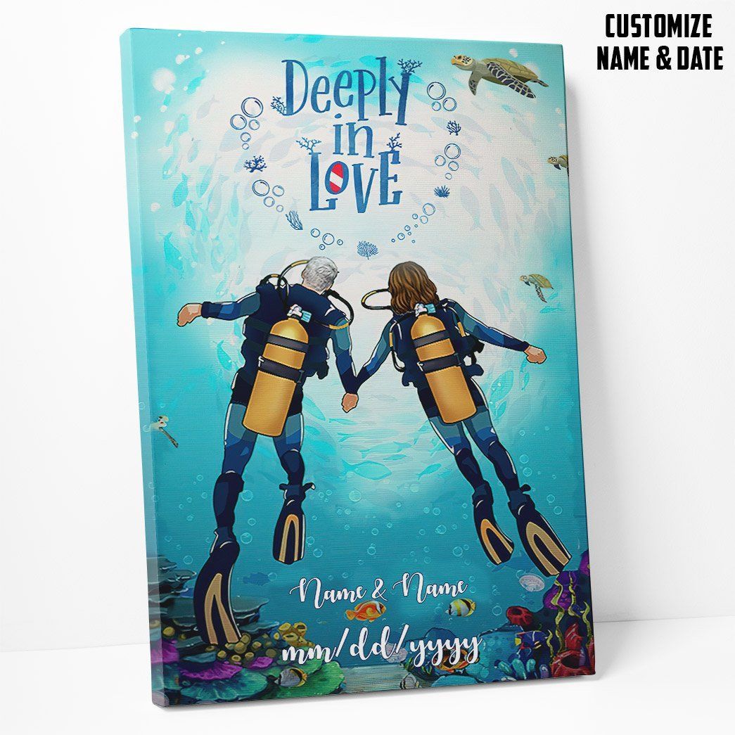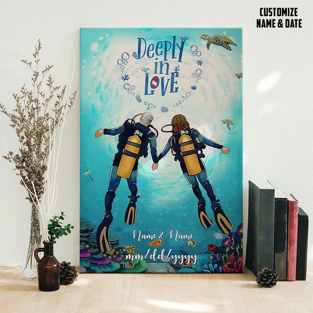 Flowermoonz 3D Scuba Diving Couple Deeply In Love Custom Name Text Canvas