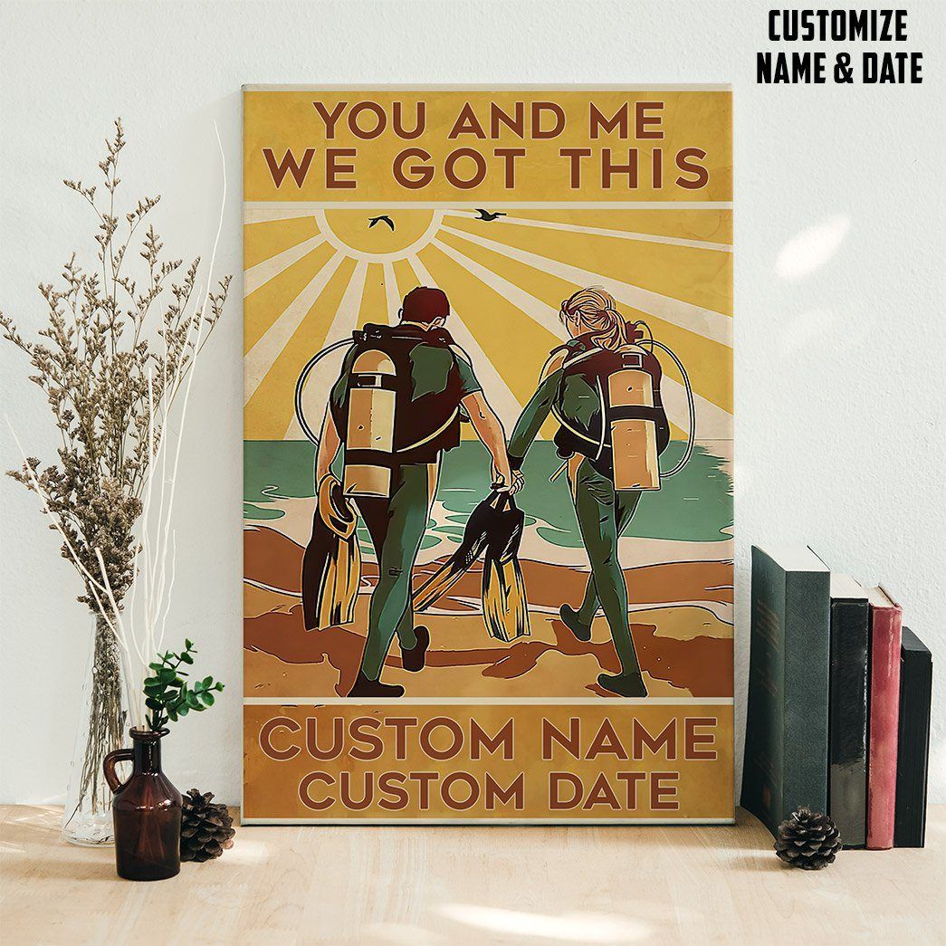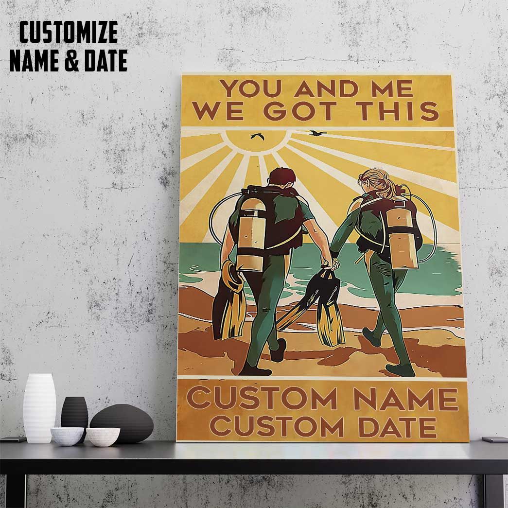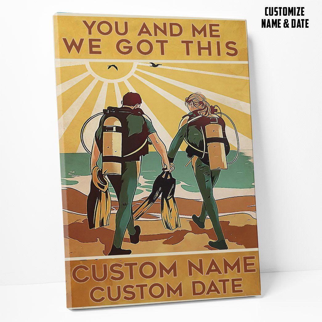 Flowermoonz 3D Scuba Diving You And Me We Got This Custom Name Text Canvas
