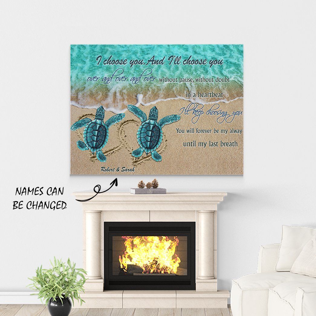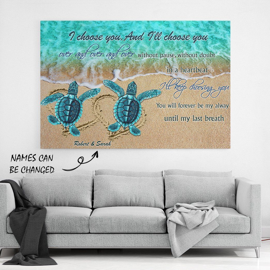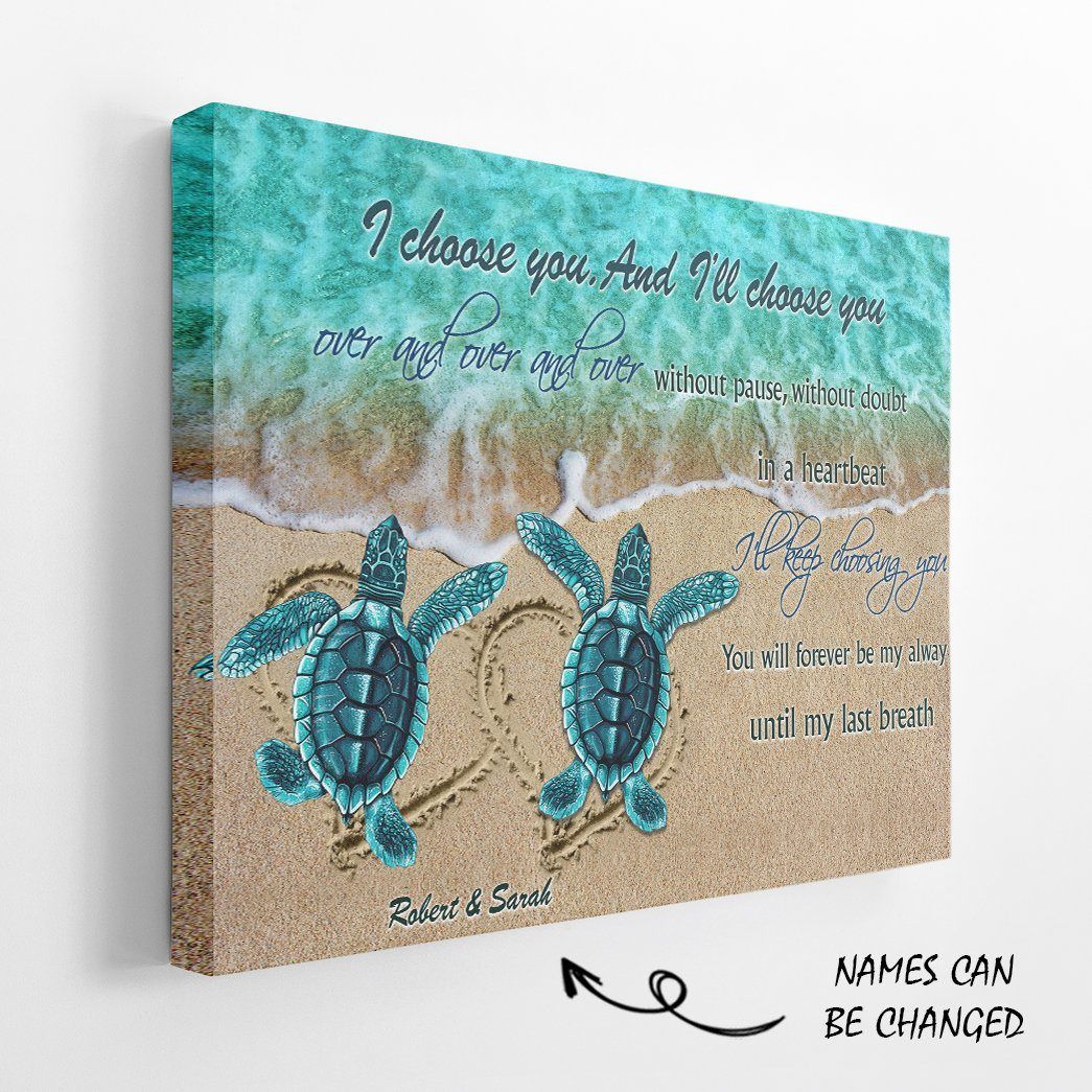 Flowermoonz 3D Sea Turtle I Choose You Custom Name Canvas