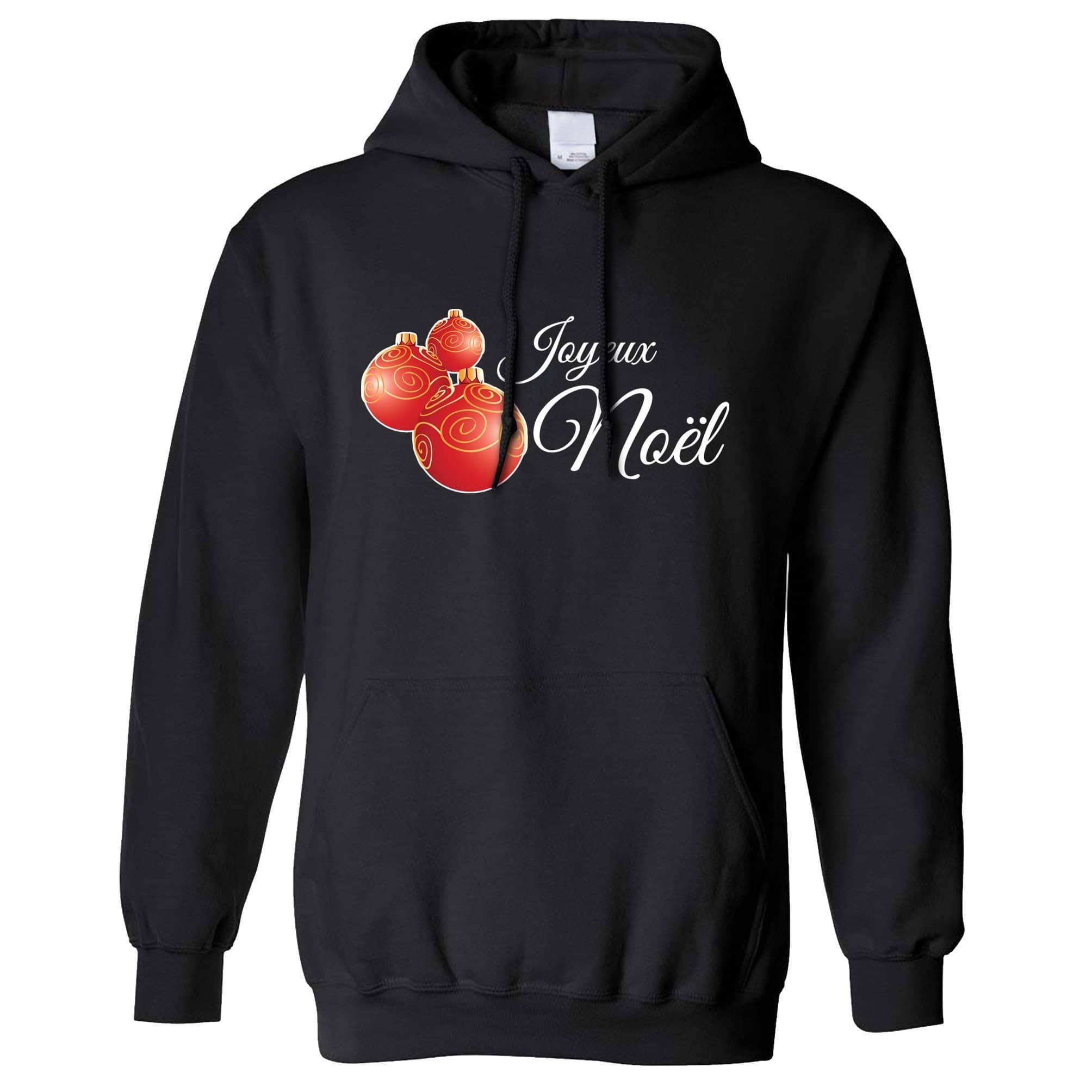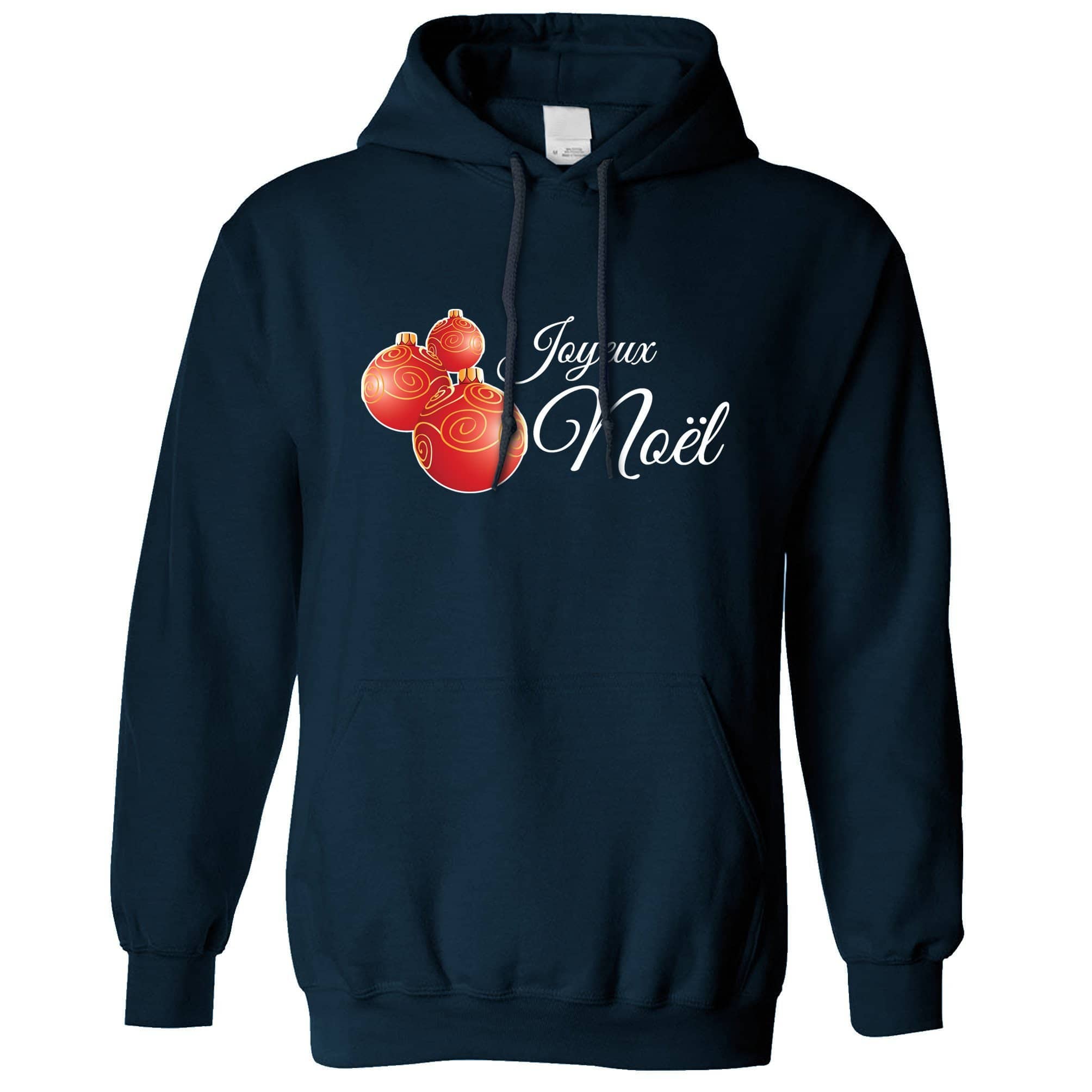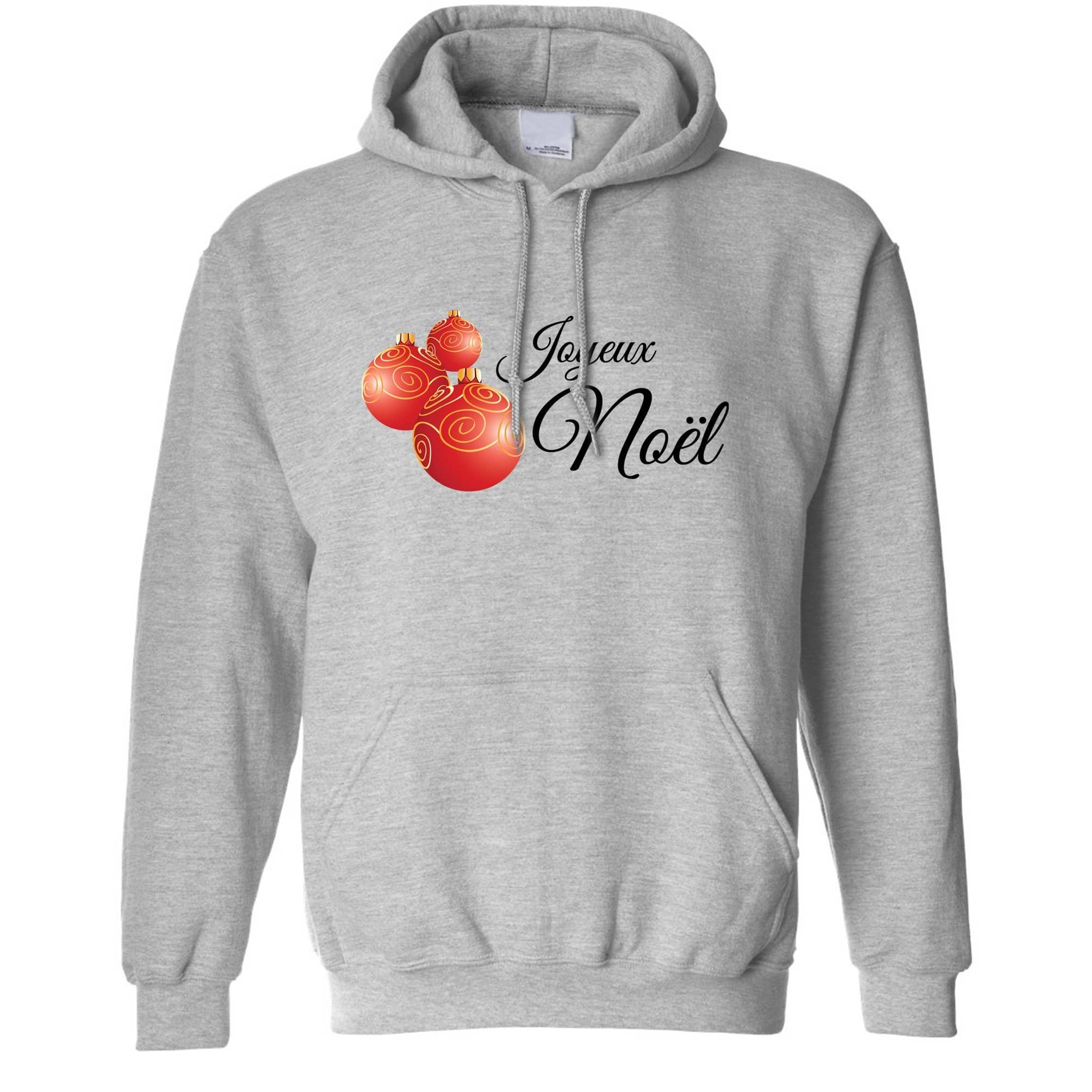 French Christmas Hoodie Joyeux Noël Baubles Slogan Hooded Jumper