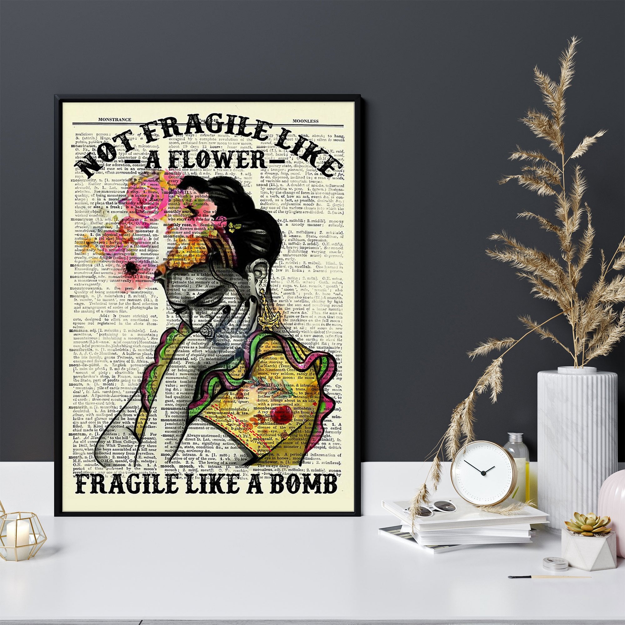 Frida Kahlo Not Fragile Like A Flower Printed Canvas Poster Wall Art, Poster Print, Canvas Print Wall Decor