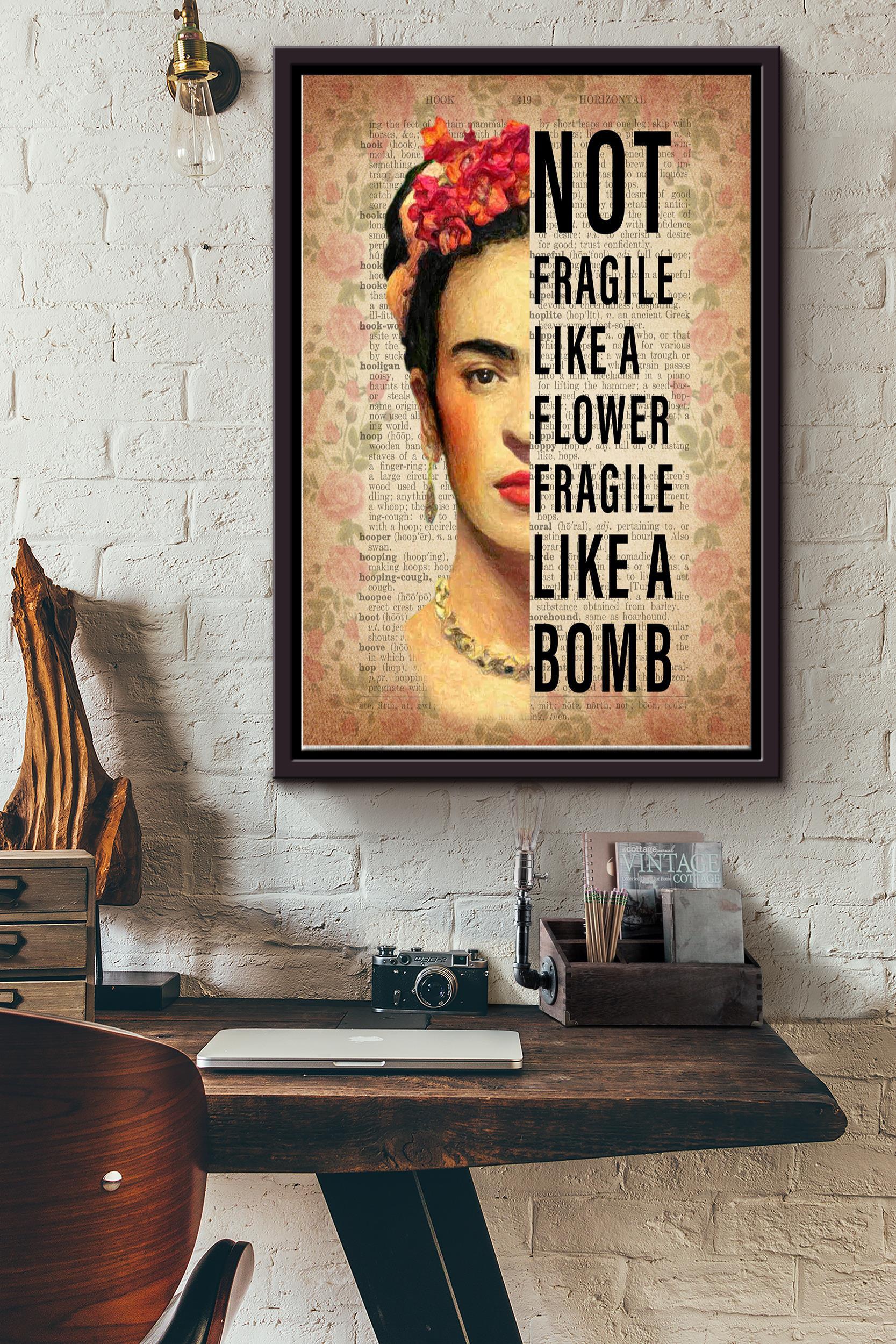 Frida Kahlo Not Fragile Like Flower Fraglie Like A Bomb Poster Framed Matte Canvas