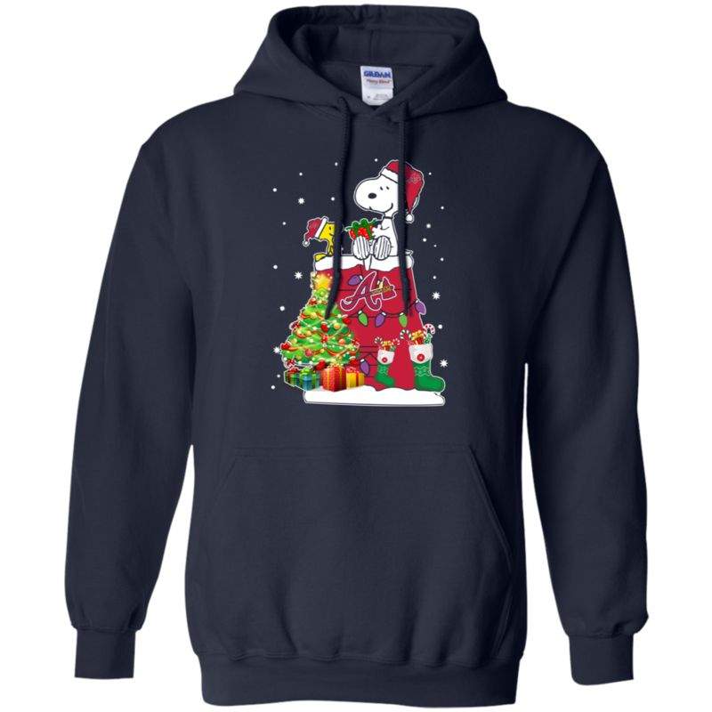 Get Here Atlanta Braves Snoopy & Woodstock Christmas Shirt G185 Gildan Pullover Hoodie 8 Oz.