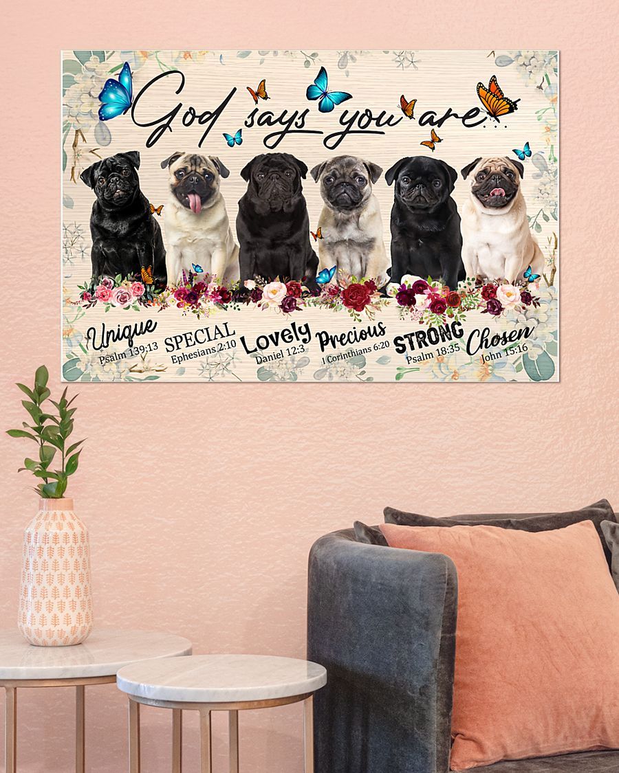 God Says You Are Pugs Floral Butterfly Landscape Poster & Canvas Gift For Dog Lovers Decor Home Decor Wall Art Visual Art