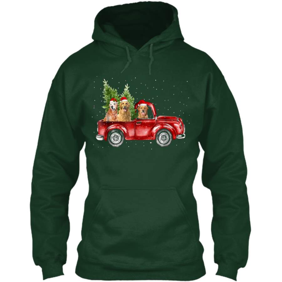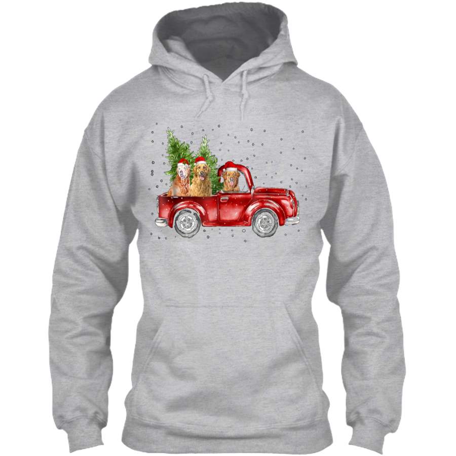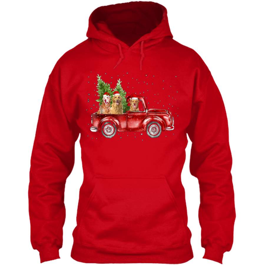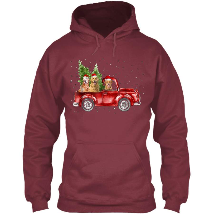 Golden Retriever Driving Red Truck Christmas Pullover Hoodie 8 oz