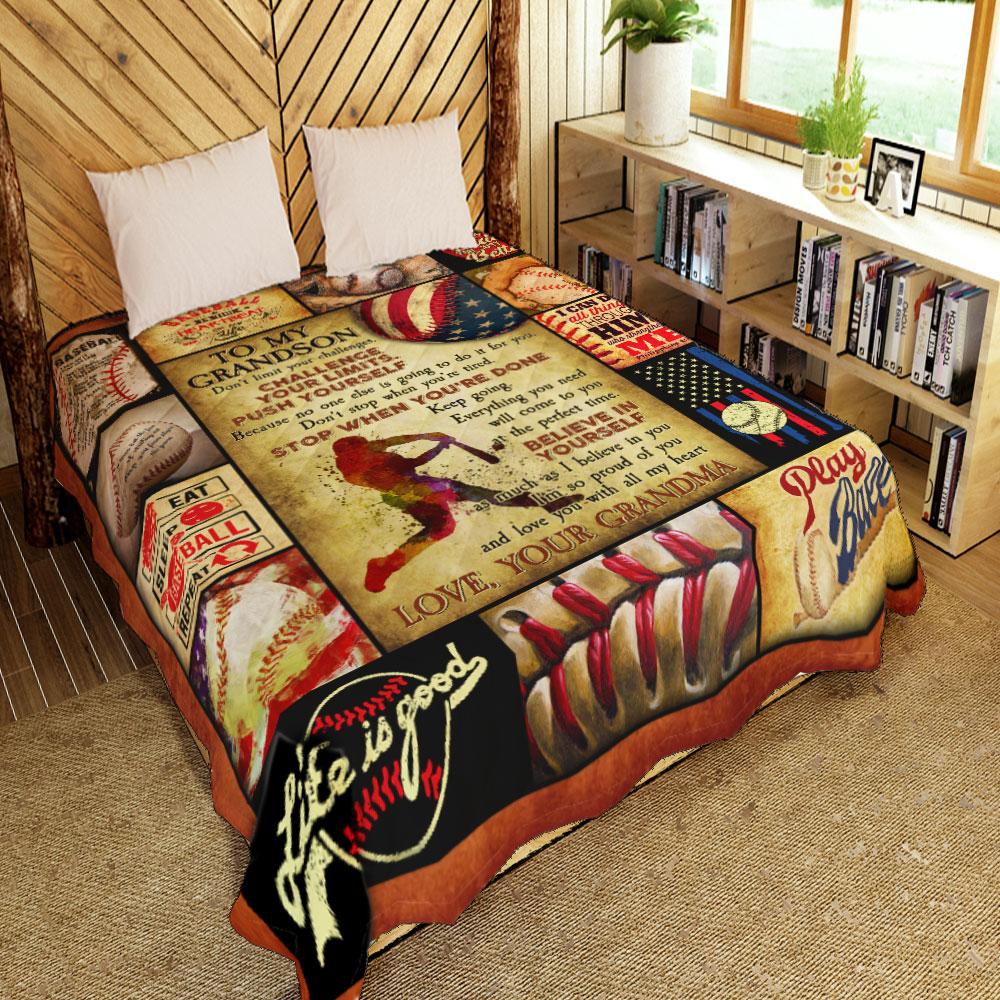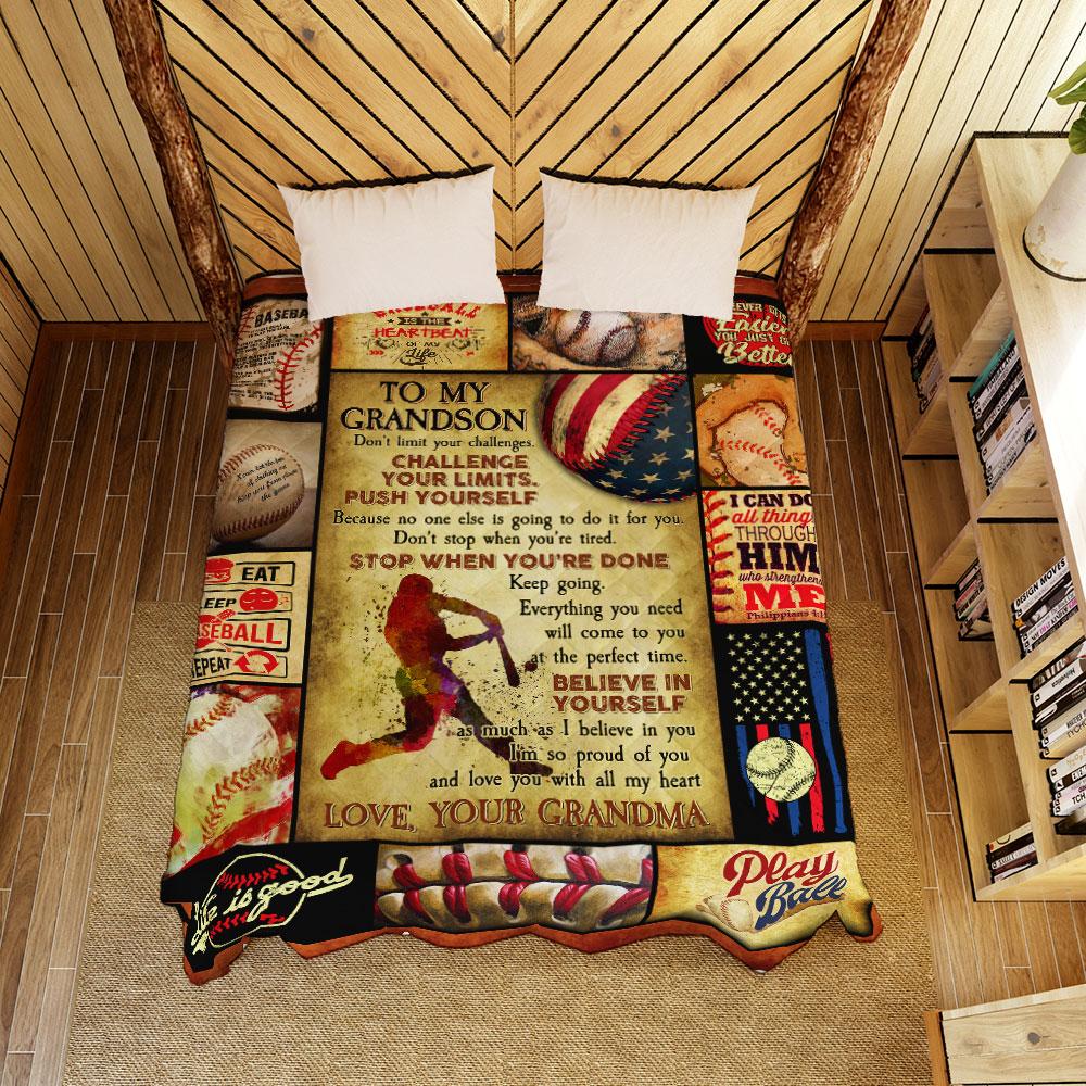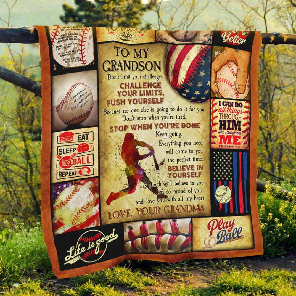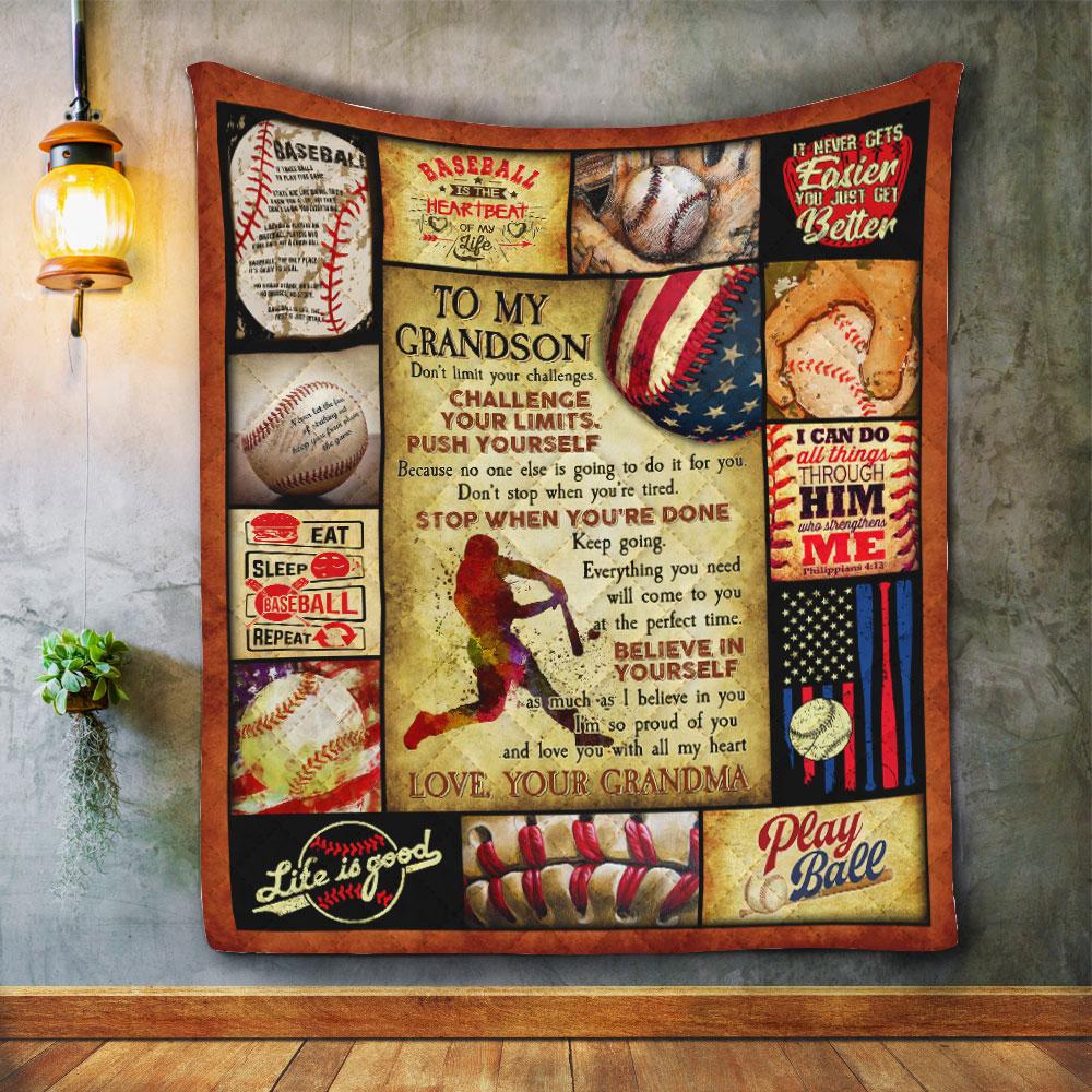 Grandma To Grandson, Don’T Limit Your Challenges, Challenge Your Limits Baseball Quilt Blanket