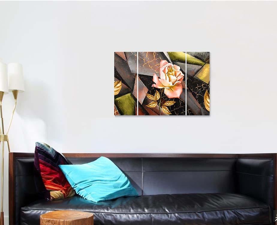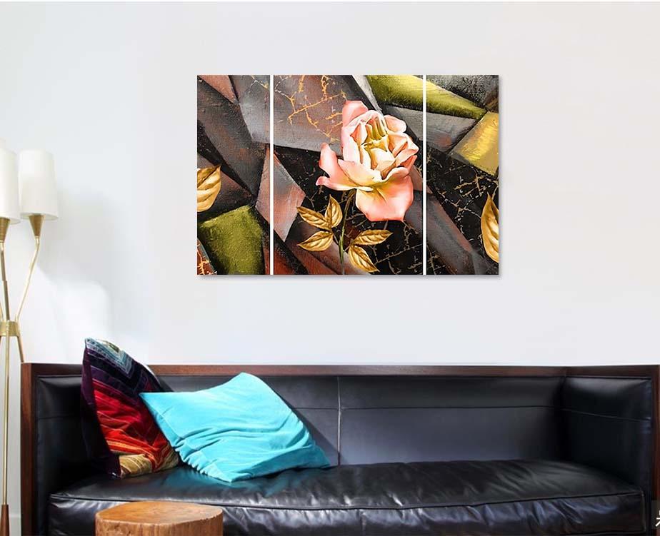 Hand Drawn Oil Painting Triptych Flower 2 – Abstract Canvas Print