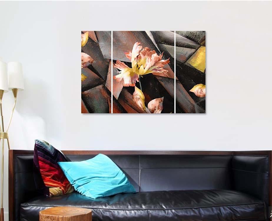 Hand Drawn Oil Painting Triptych Flower 3 – Abstract Canvas Print