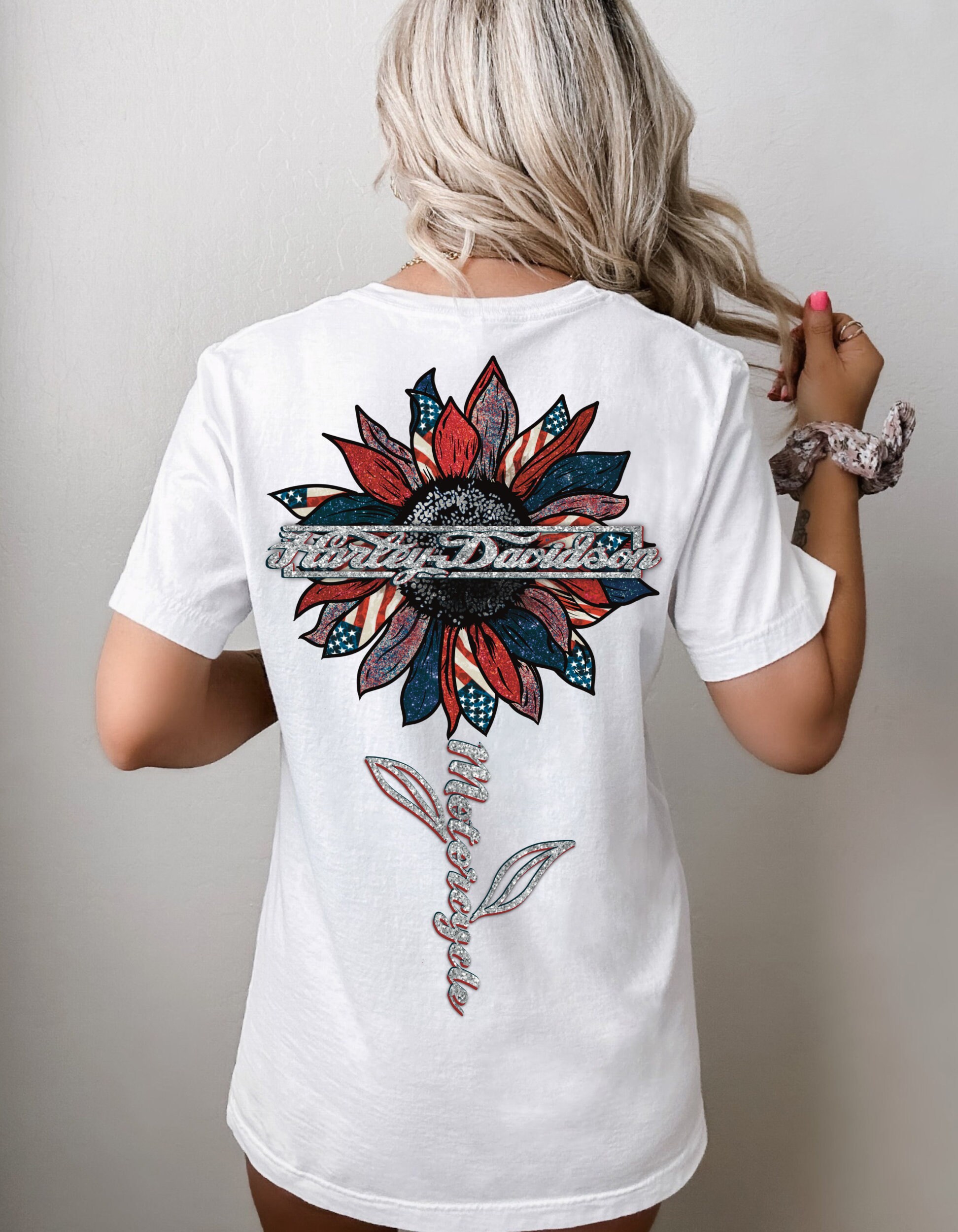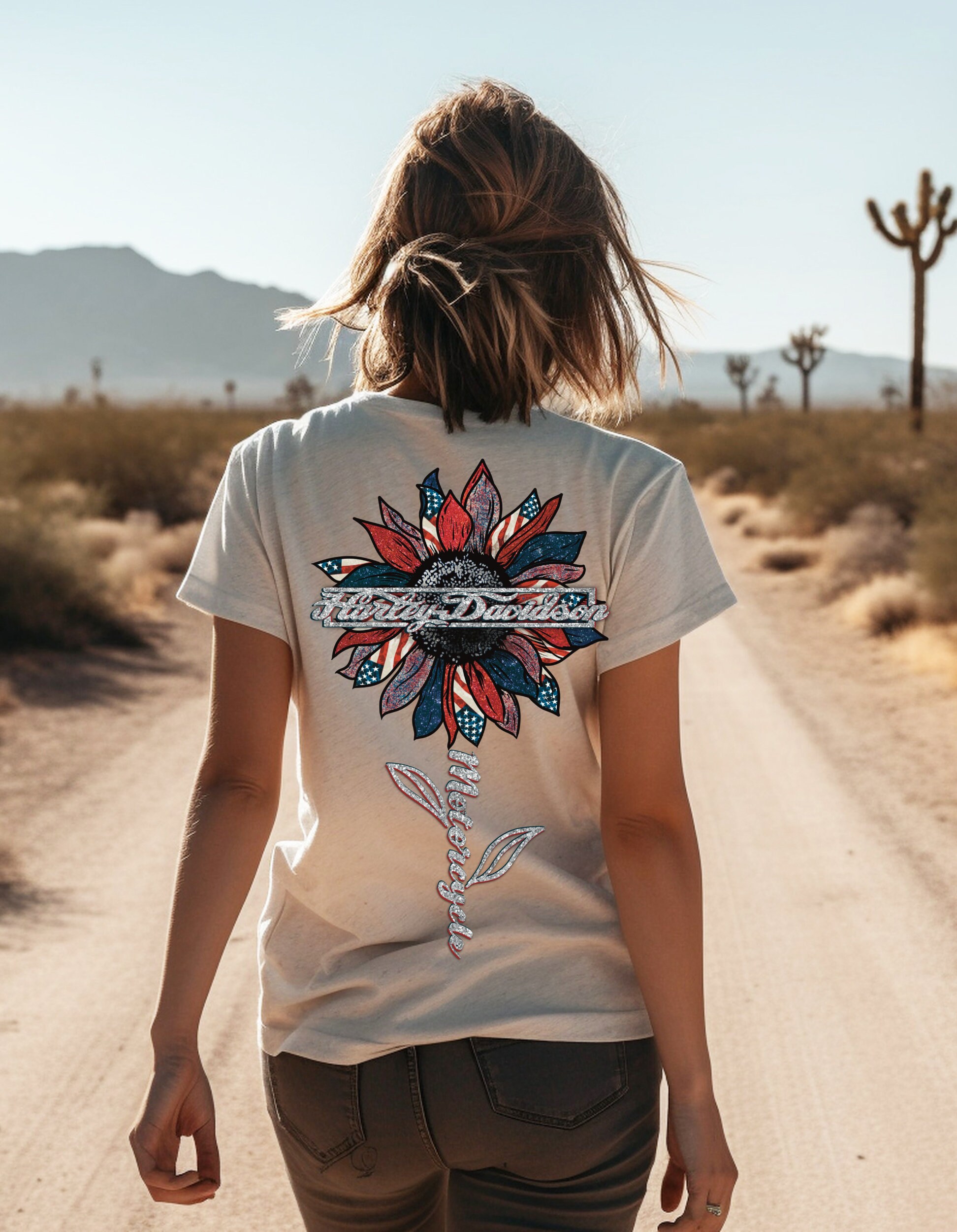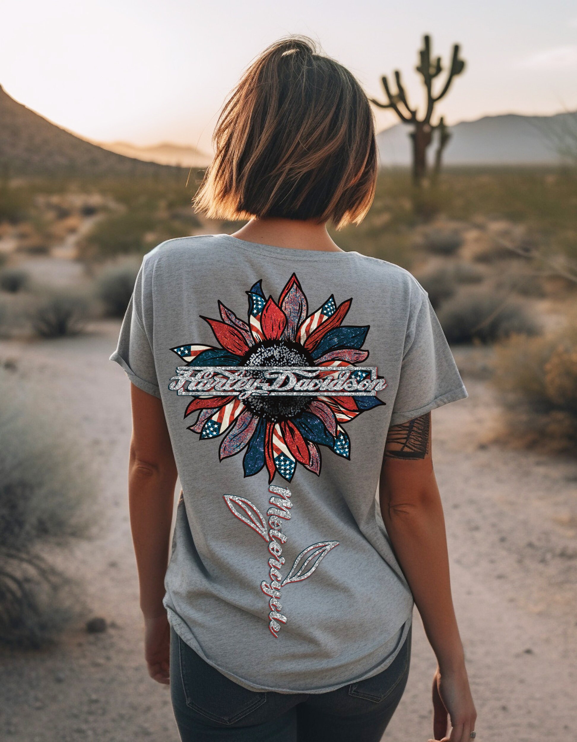 Harley Davidson Patriotic Flower T Shirt, Mama Loves to Ride Shirt, Independence Day Shirt, Harley Davidson Mama Rider, Graphic T Shirt