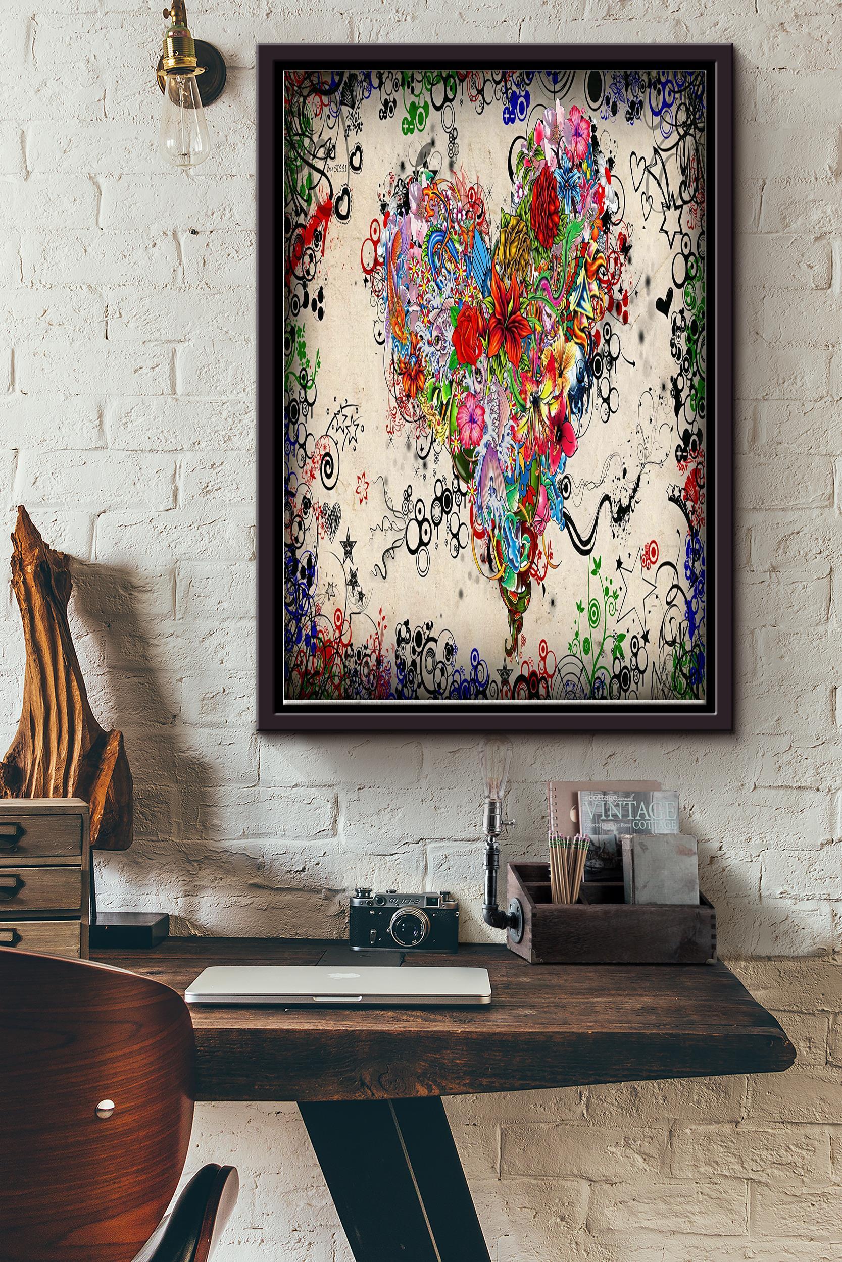 Heart Flower Poster – Love Wall Art – Gift For Lover, Crush, Boyfriend, Girlfriend Framed Matte Canvas