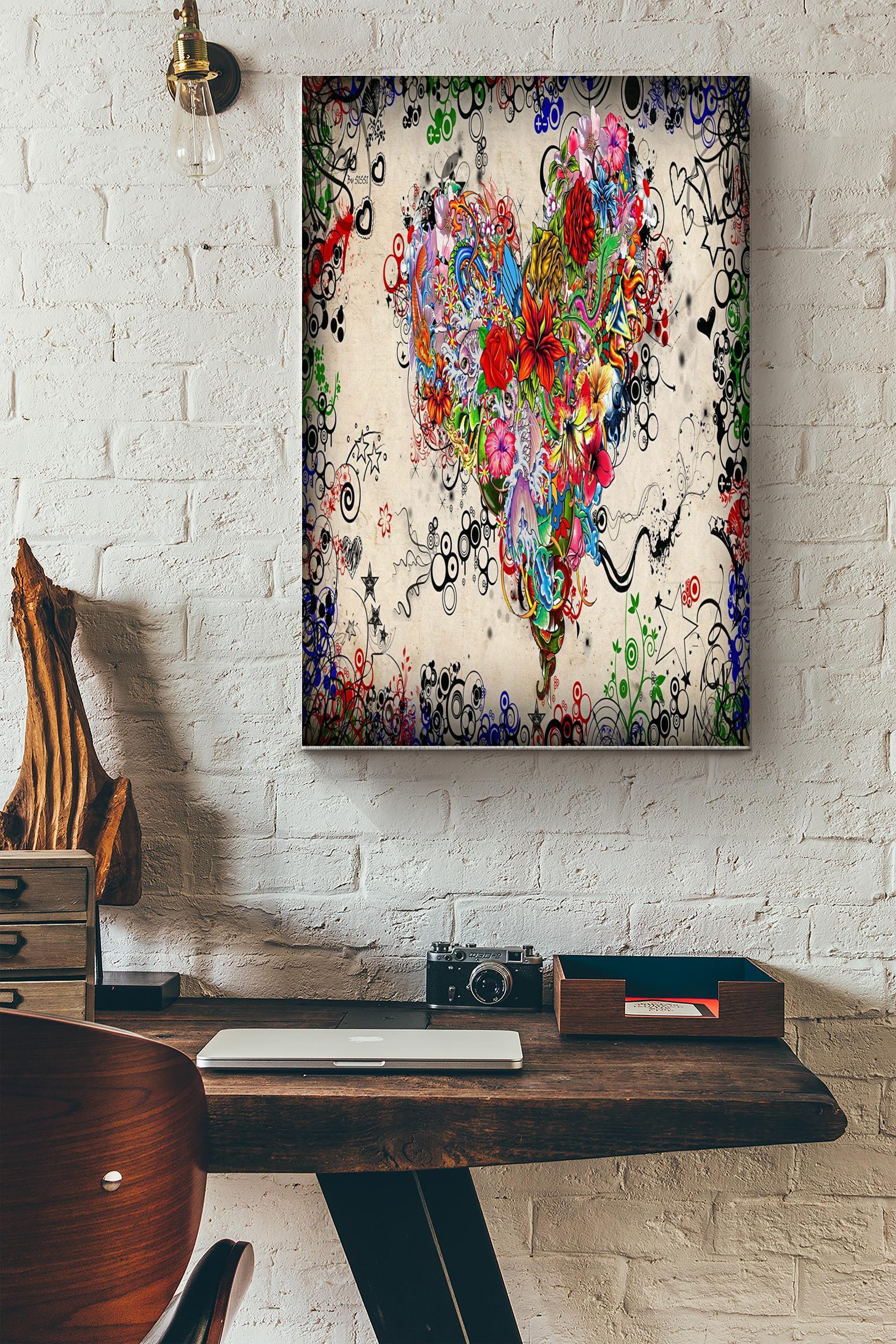 Heart Flower Poster – Love Wall Art – Gift For Lover, Crush, Boyfriend, Girlfriend Wrapped Canvas
