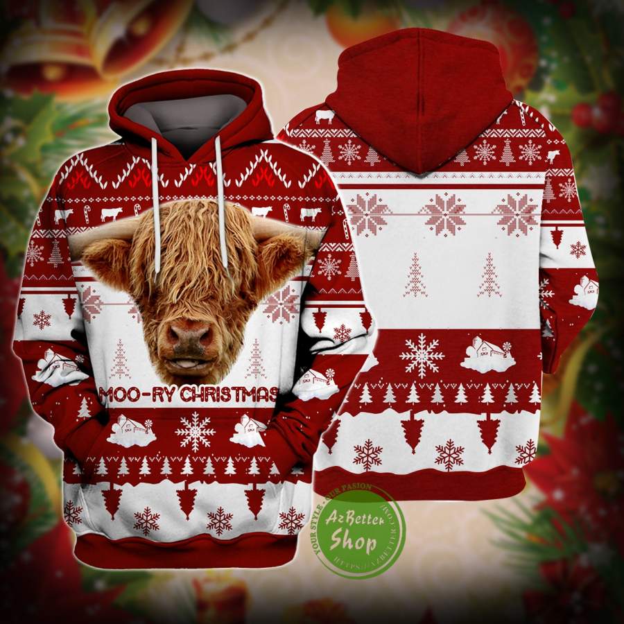 Highland Cattle Moo-Ry Christmas 3D Hoodie
