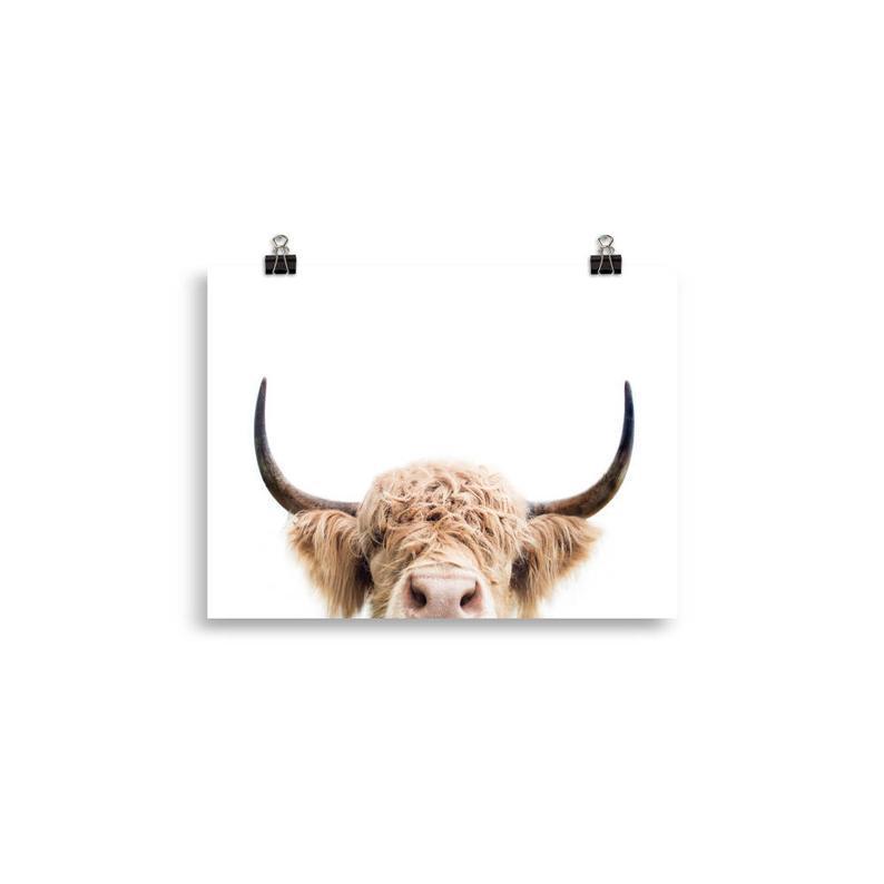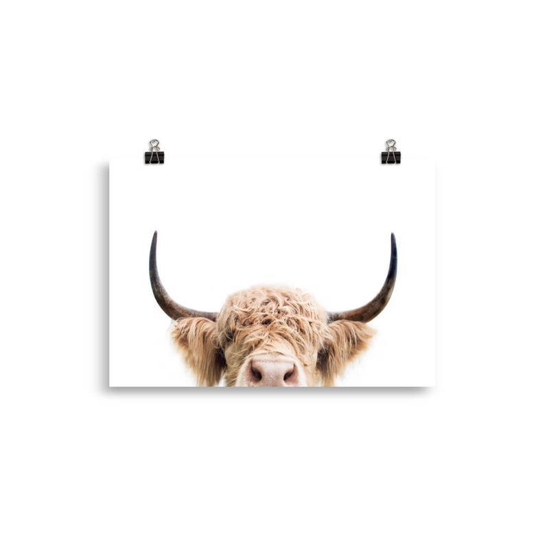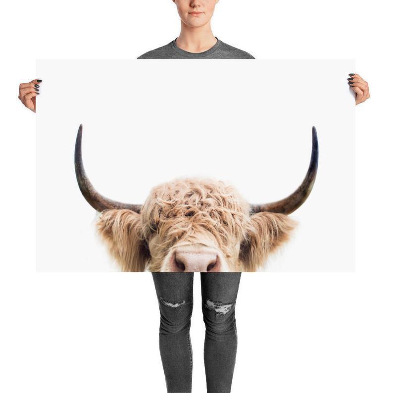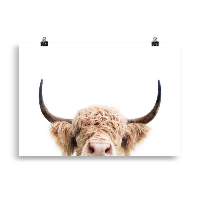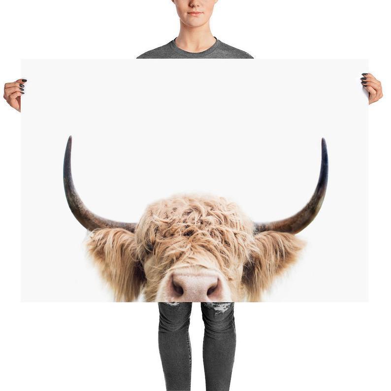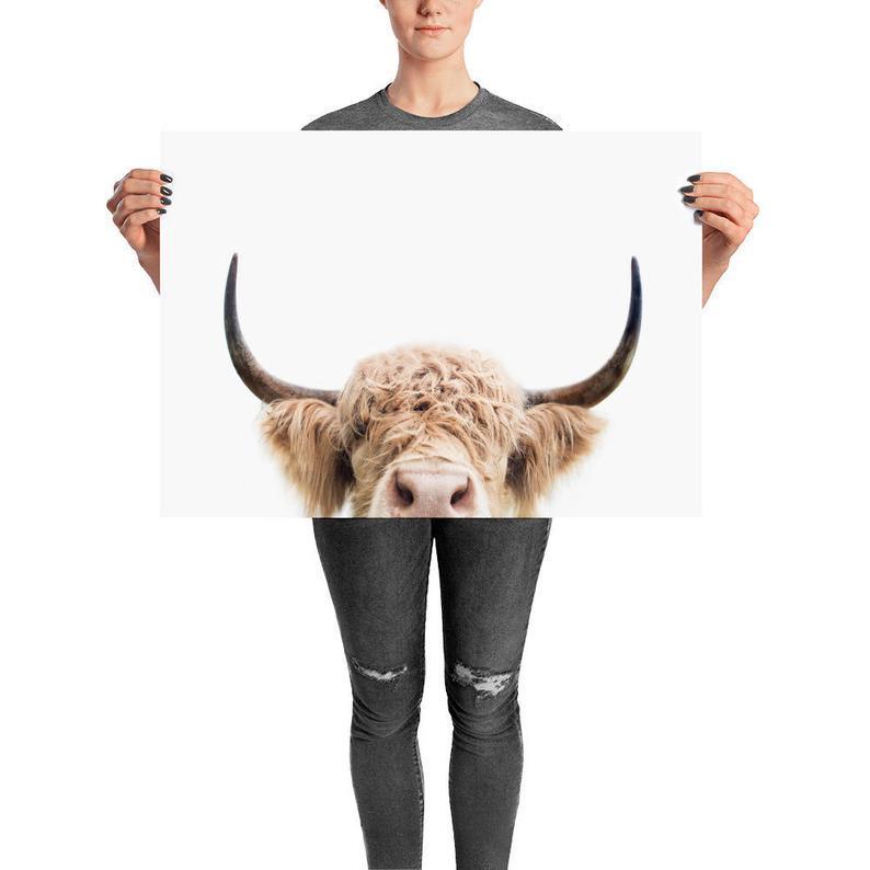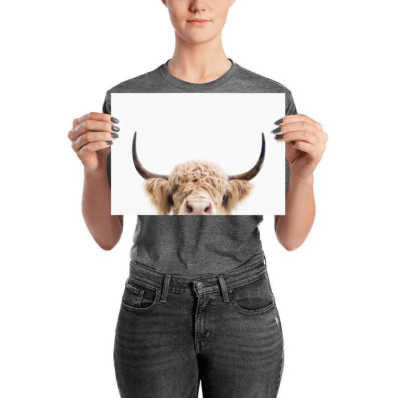 Highland Cow Poster, Peeking Cow Print, Farm Animal, Animal Wall Art, Print For Nursery, Ranch Print, Peekaboo Animal, Printed Art