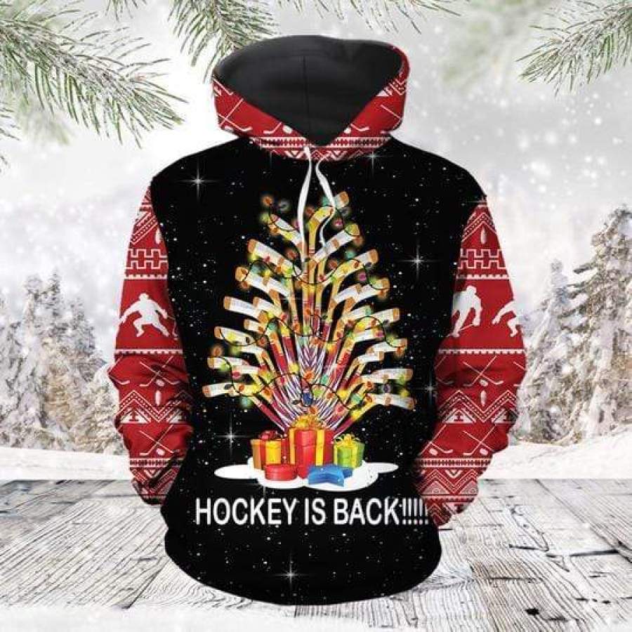 Hockey Is Back Christmas Black Red Hoodie 3D All Over Print