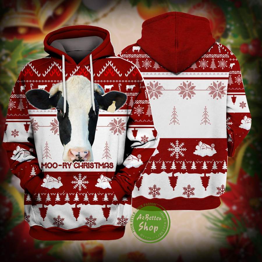 Holstein Cattle Moo-Ry Christmas 3D Hoodie