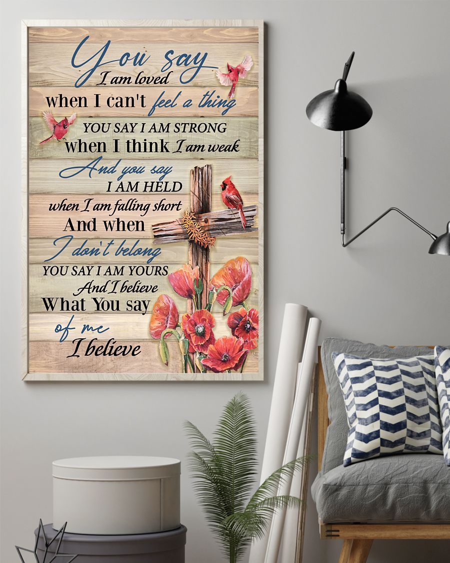 Humming & Floral Cross – You Say I Am Loved When I Can’T Feel A Thing Portrait Canvas & Poster Memorial Gift Family Gift Home Decor Wall Art Visual Art