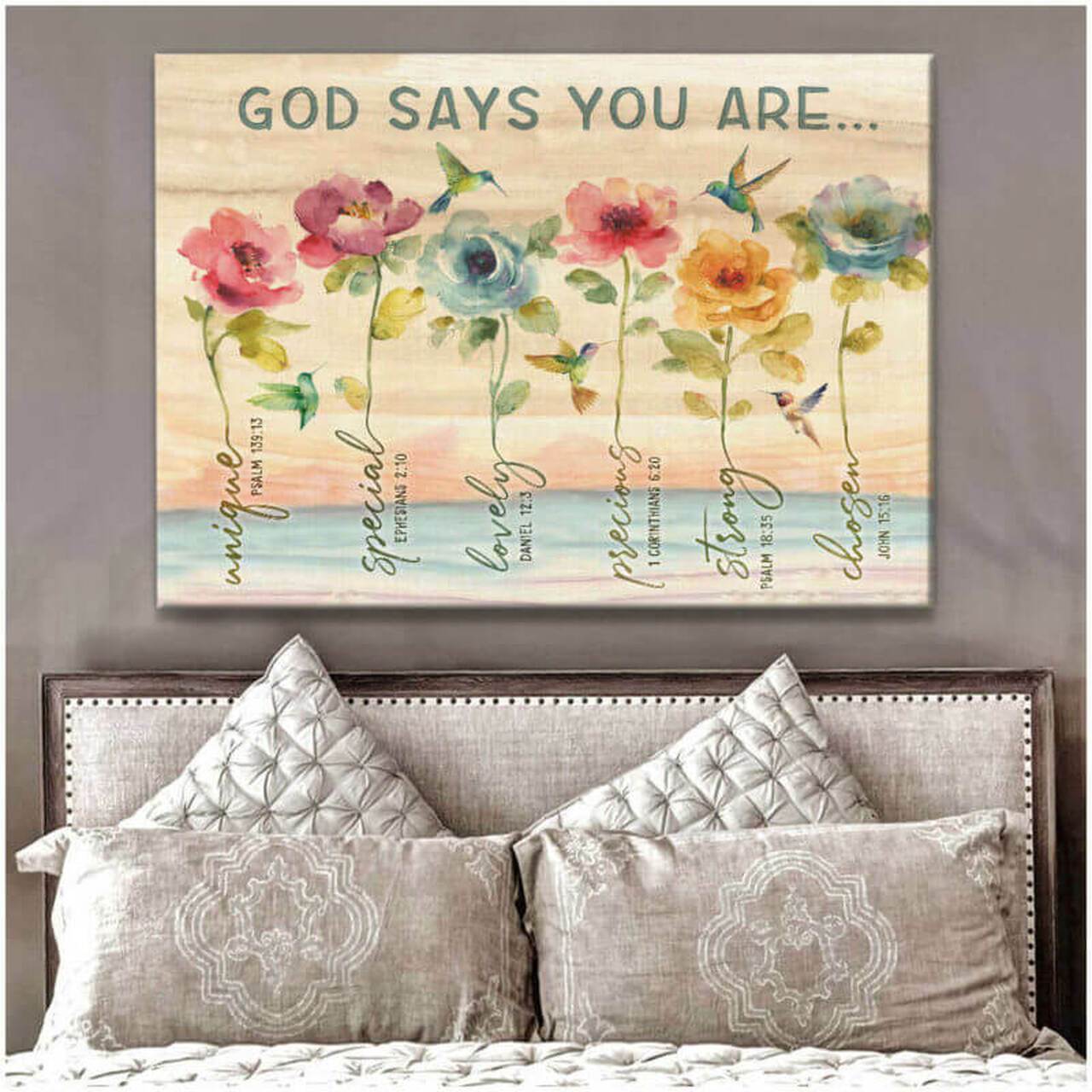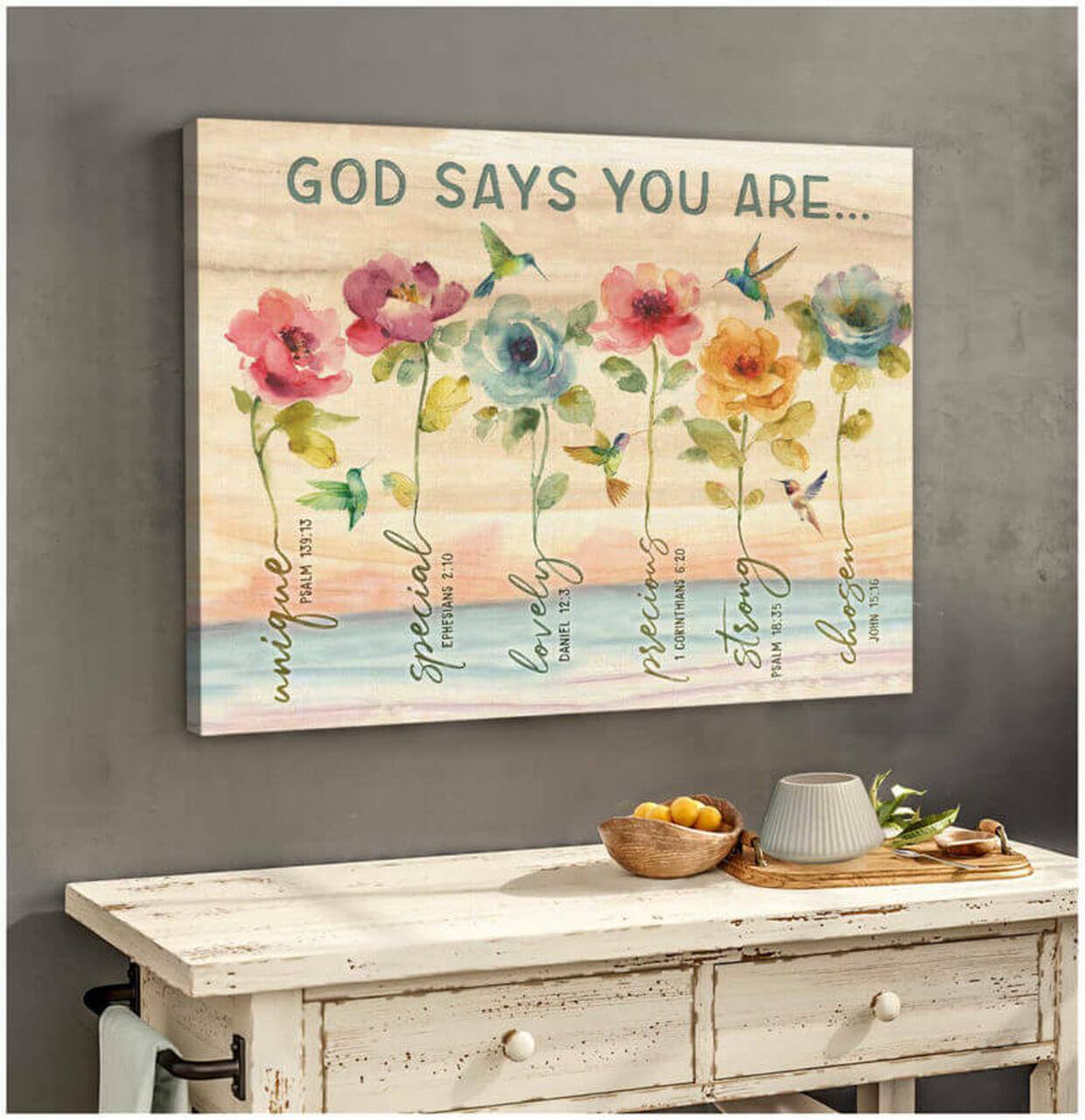 Hummingbird God Says You Are Floral Landscape Canvas & Poster Family Gift Kitchen Dercor Home Decor Wall Art Visual Art