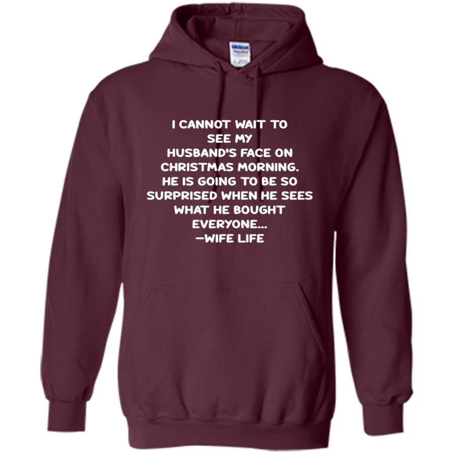 I Cannot Wait To See My Husband’s Face On Christmas Morning He Is Going To Be So Surprised When He Sees What He Bought Everyone – Wife Life – Gildan Heavy Blend Hoodie