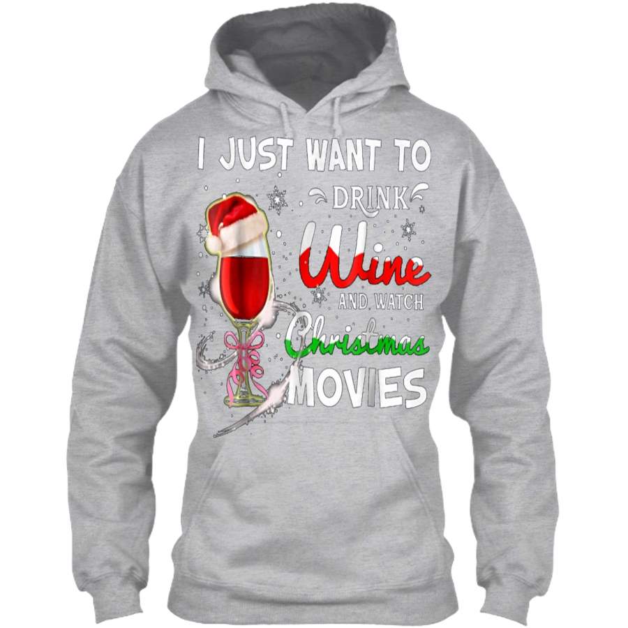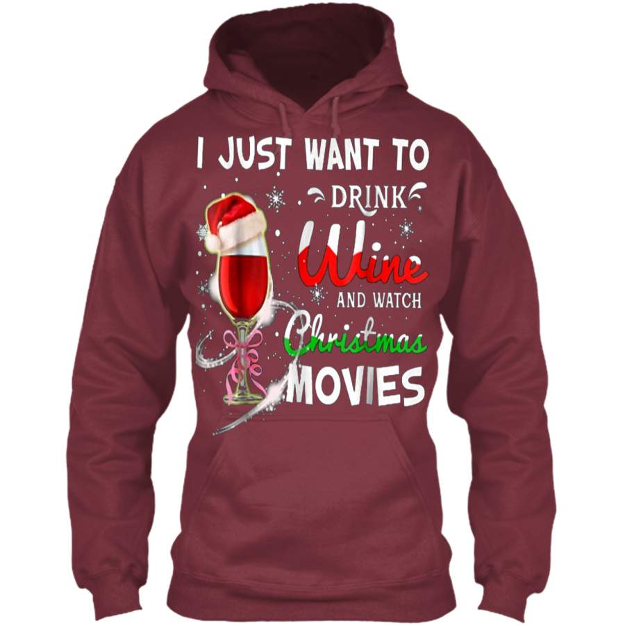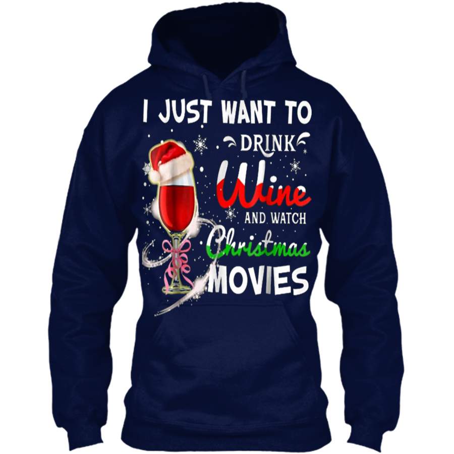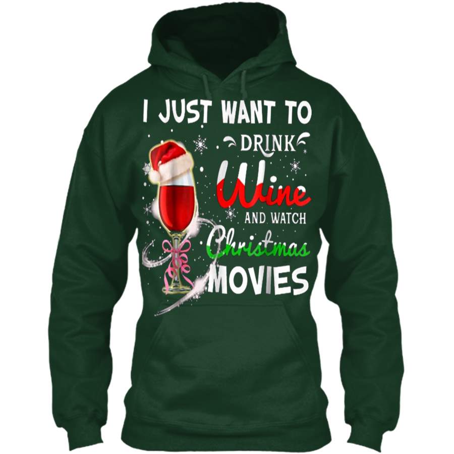 I Just Want To Drink Wine And Watch Christmas Movies Pullover Hoodie Christmas Gift Ideas