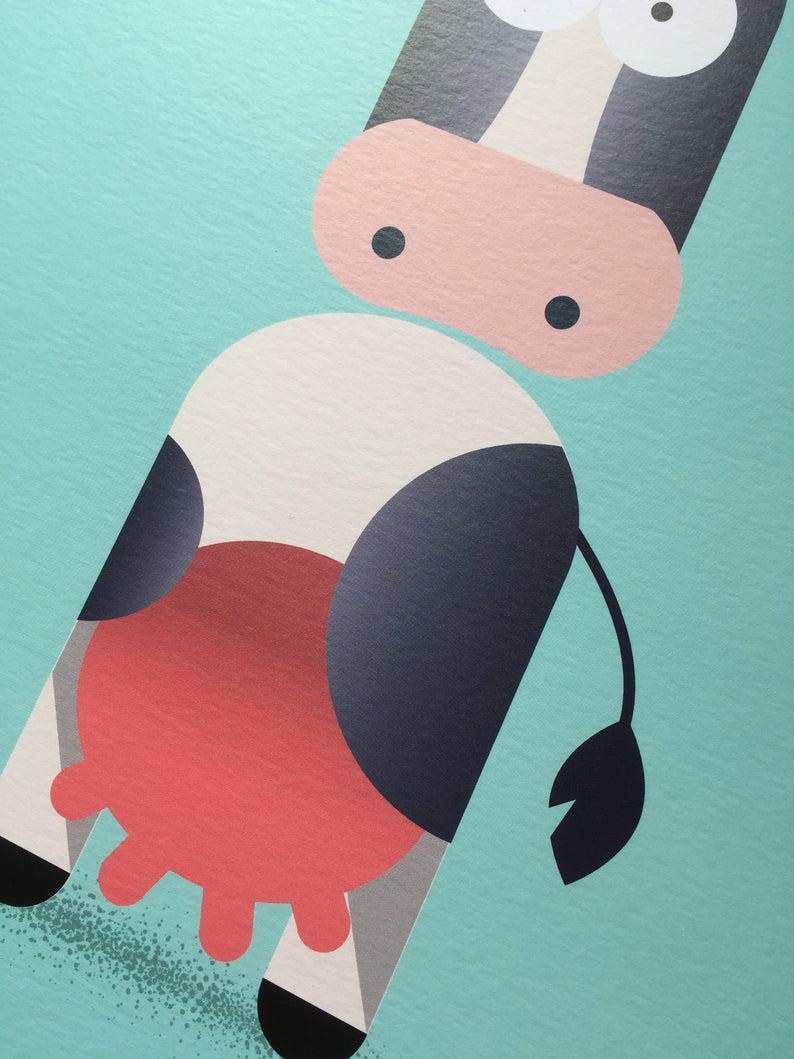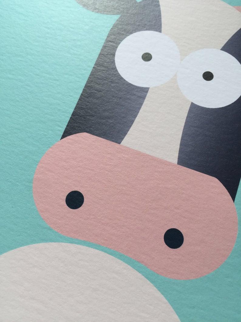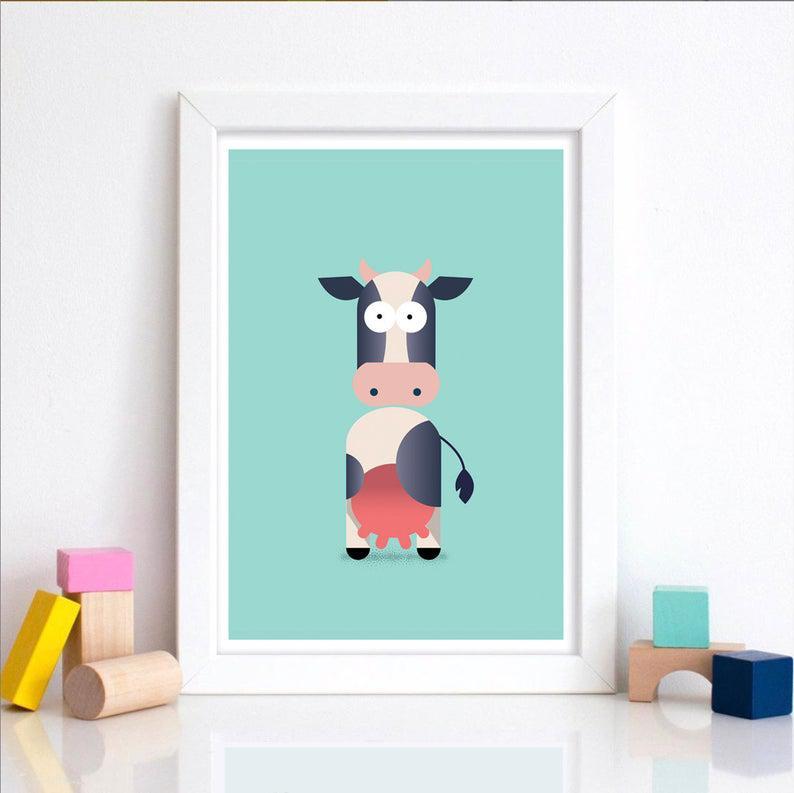 Illustrated Cow Print Wall Art Prints Posters Pictures Kids Children’S Bedroom Nursery Home Decor Illustration
