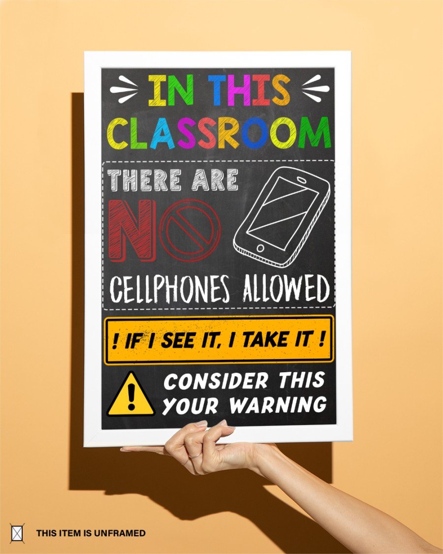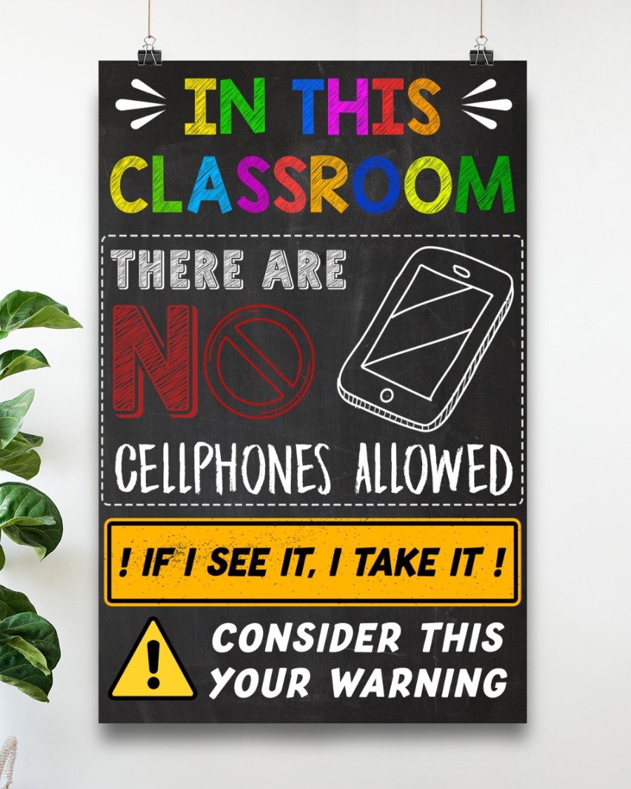 In This Classroom -There Are No Callphones Allowed Portrait Canvas & Poster Growth Mindset, Motivational Wall Art, School Office Classroom Teacher Decoration Art Wall Art
