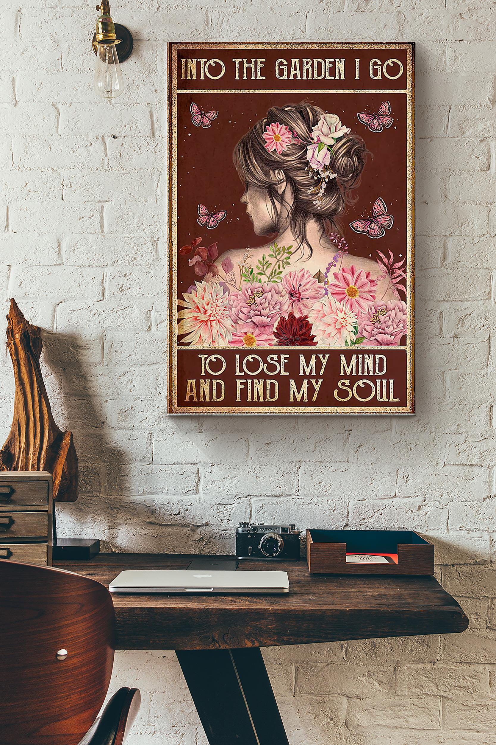 Into The Garden I Go To Lose My Mind And Find My Soul Girl With Flowers Poster Wrapped Canvas