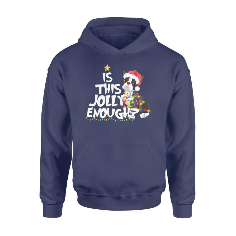 Is This Jolly Enough Boston Terrier Santa Christmas Light T-shirt – Standard Hoodie