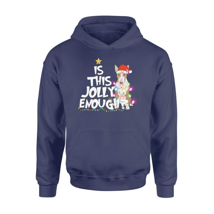 Is This Jolly Enough Bull Terrier Santa Christmas Light T-shirt- Standard Hoodie