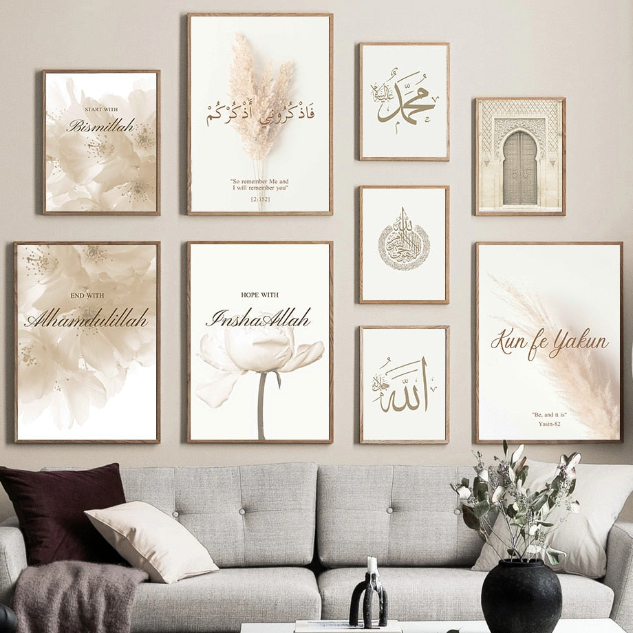 Islamic Poster Beige Flower Canvas Print Mosque Morocco Door Wall Art Painting Quote Bohemia Picture Modern Home Domitory Decor