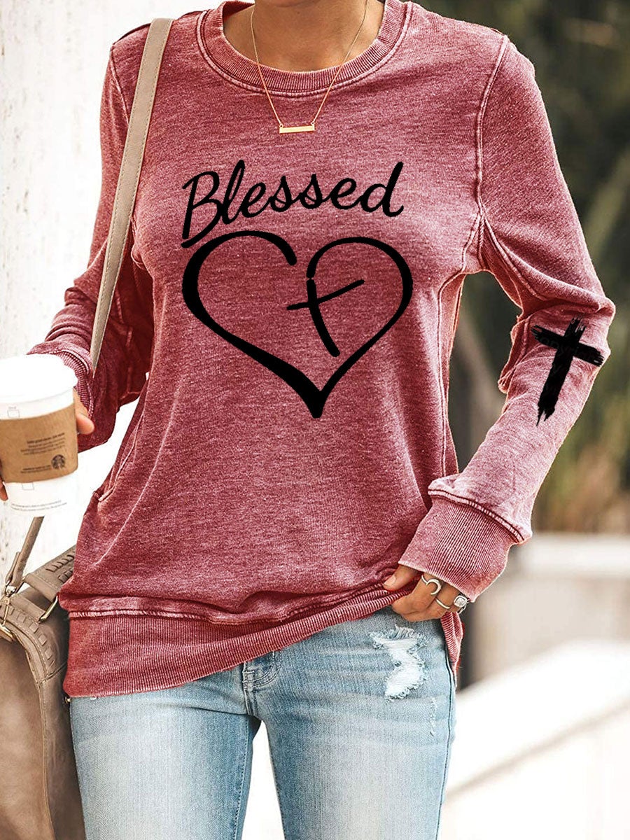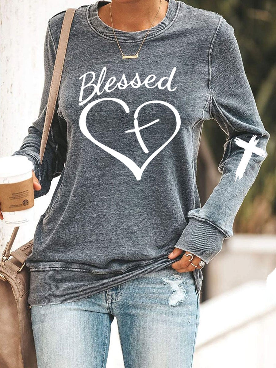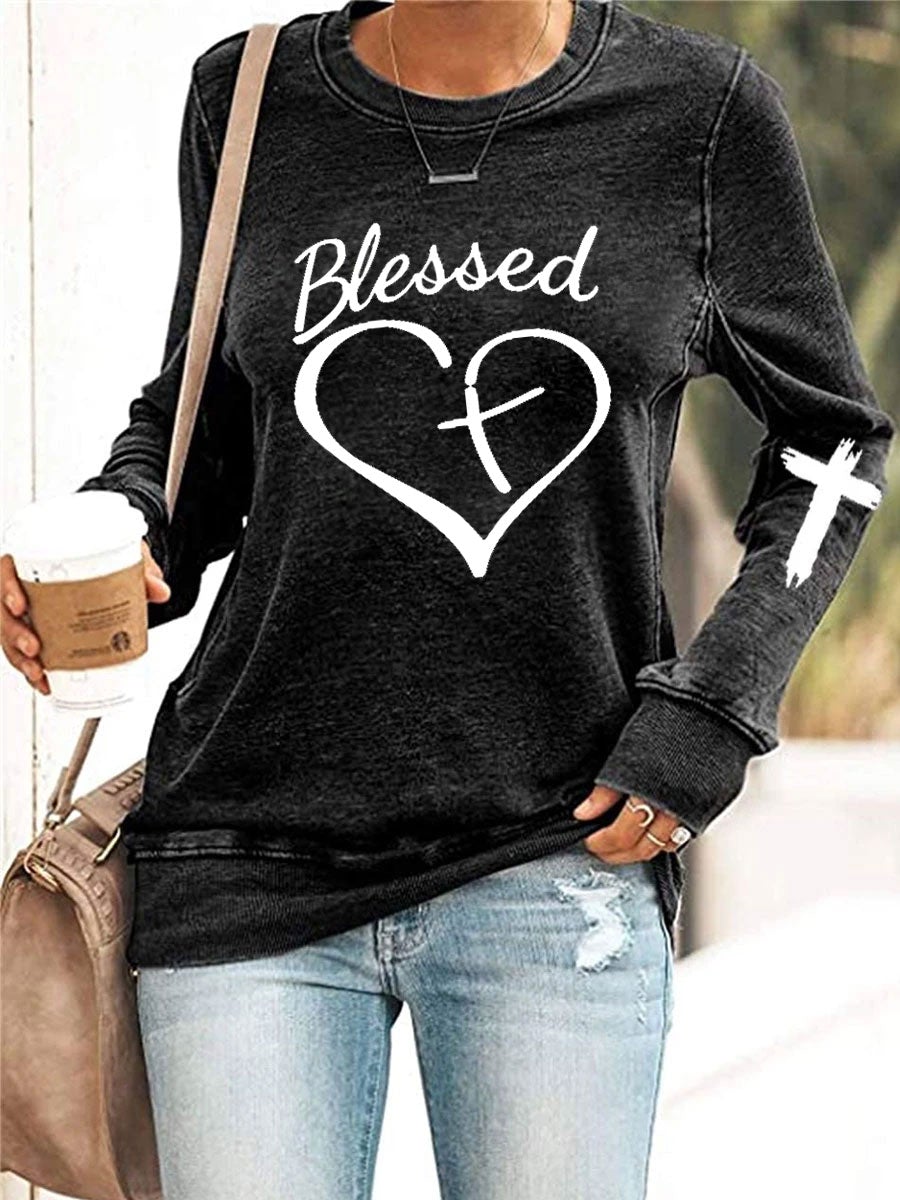 Jesus Has My Back, Blessed Cross Heart Long Sleeve Top
