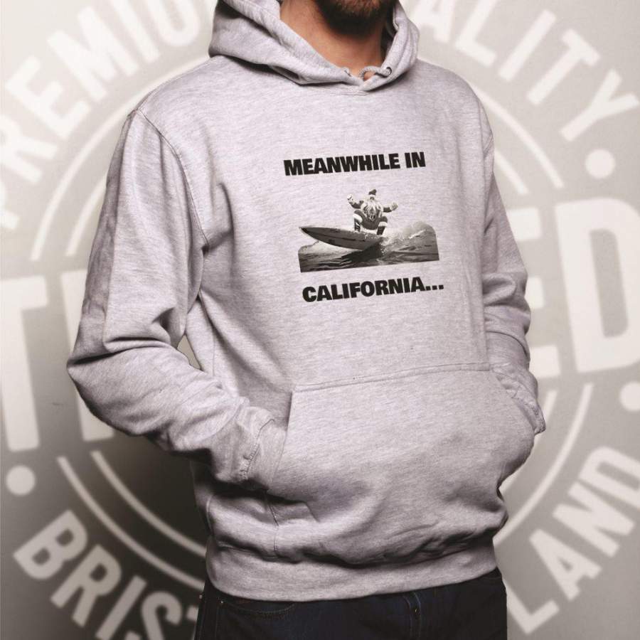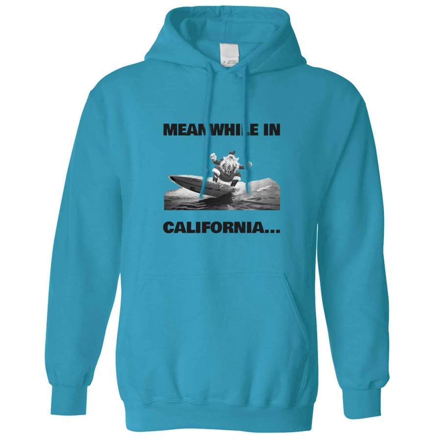 Joke Christmas Hoodie Meanwhile in California Santa Hooded Jumper