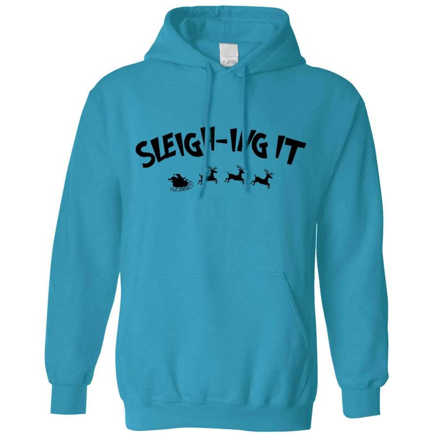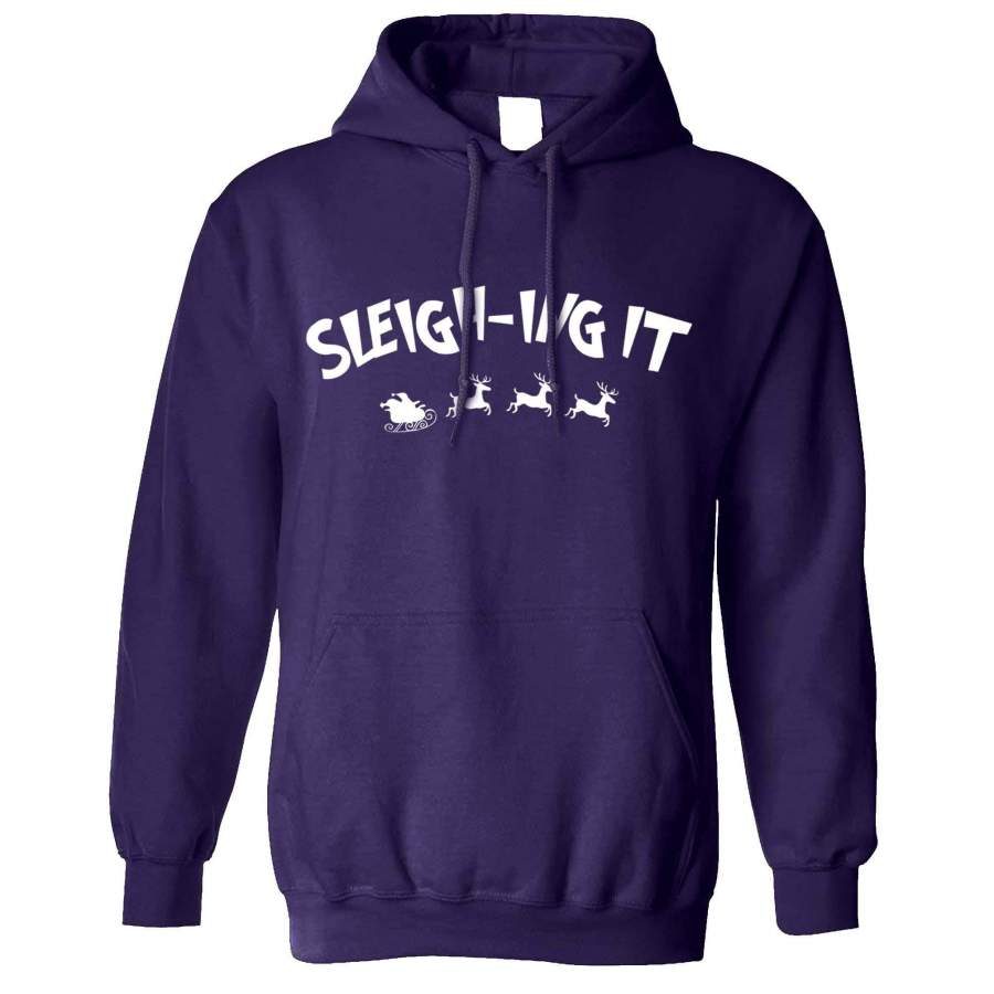 Joke Christmas Hoodie Sleigh-ing Slaying It Pun Hooded Jumper