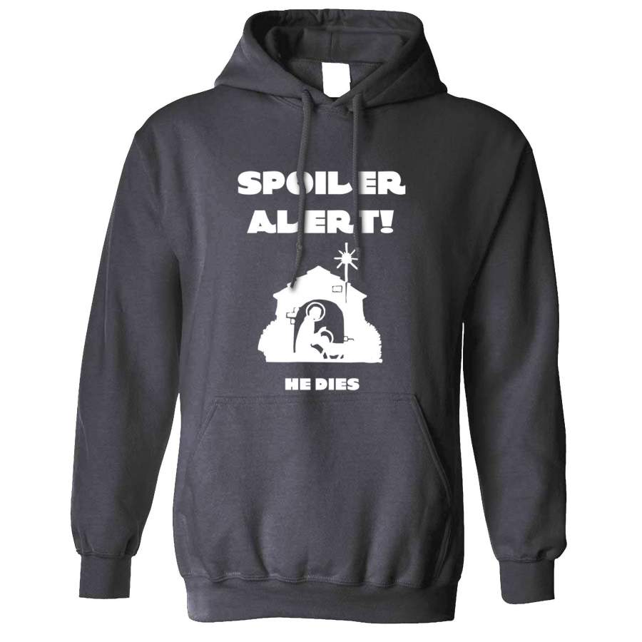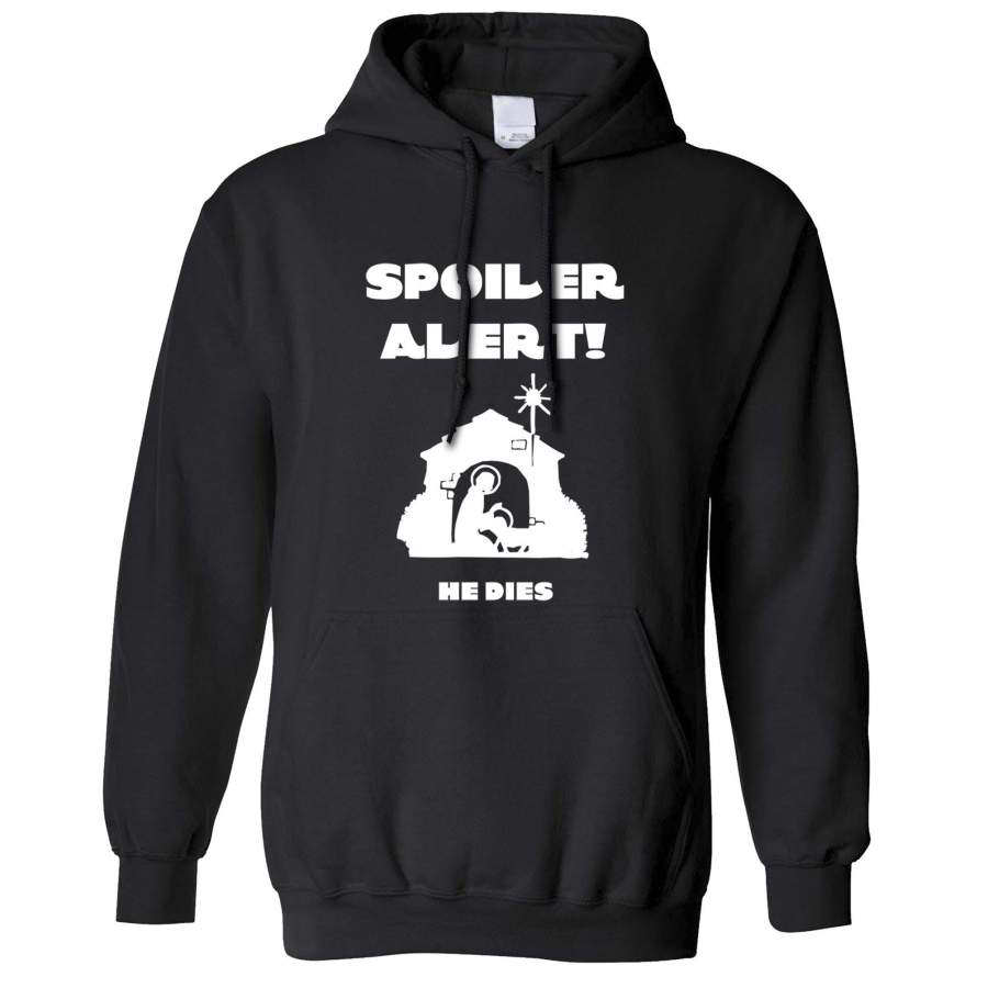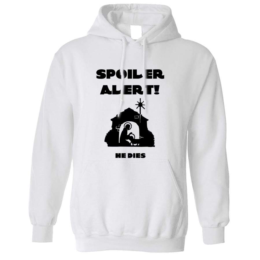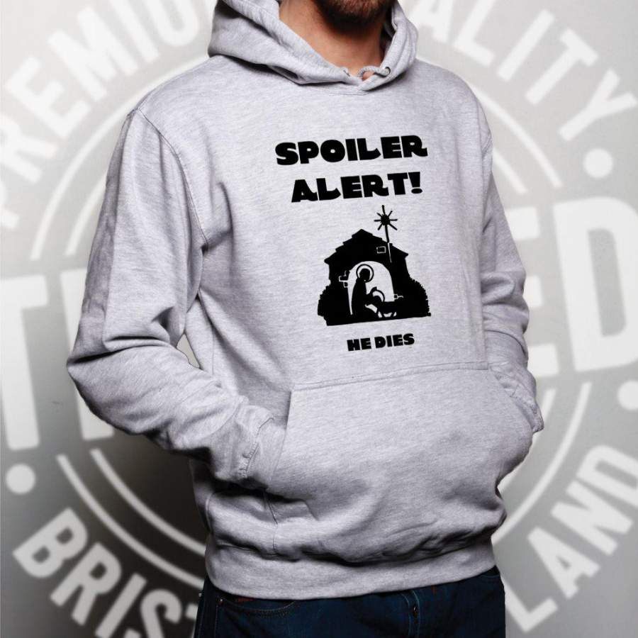 Joke Christmas Hoodie Spoiler Alert He Dies Nativity Hooded Jumper