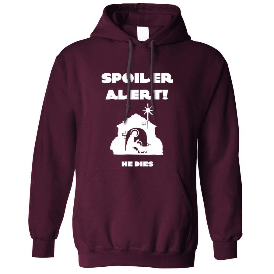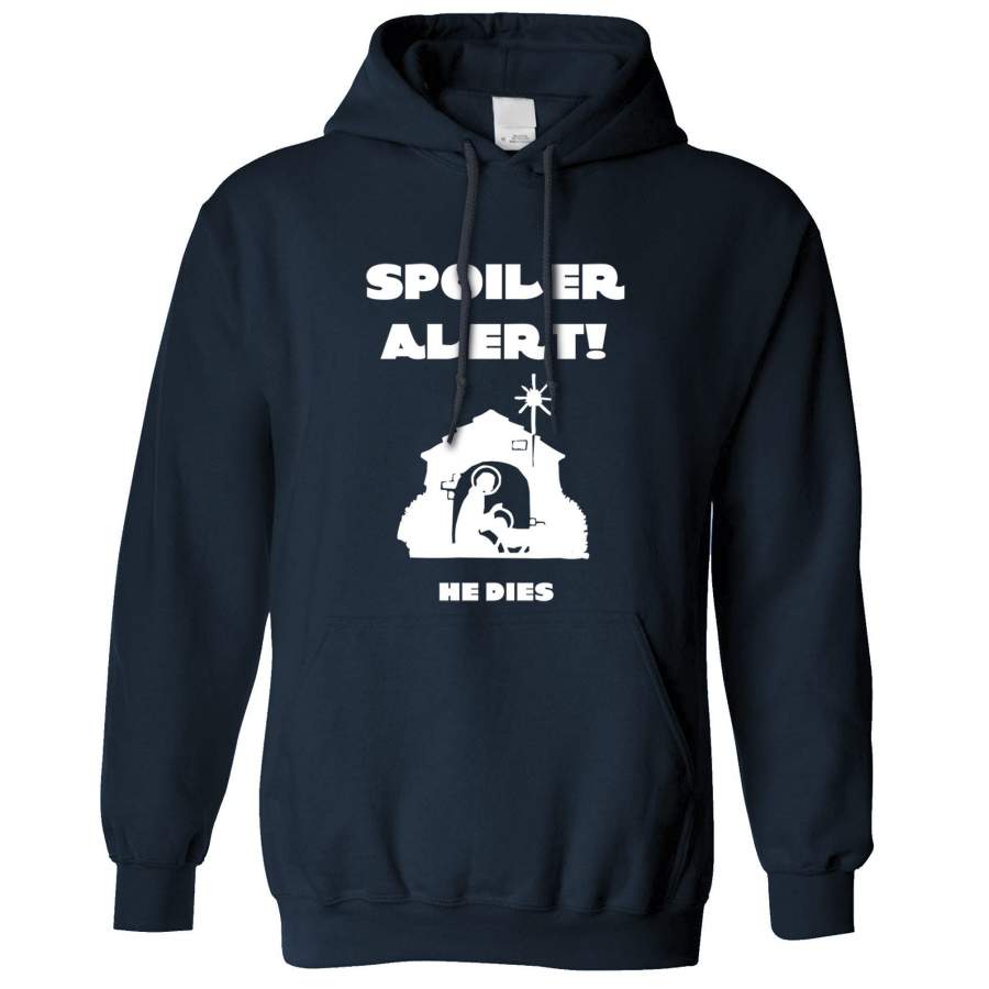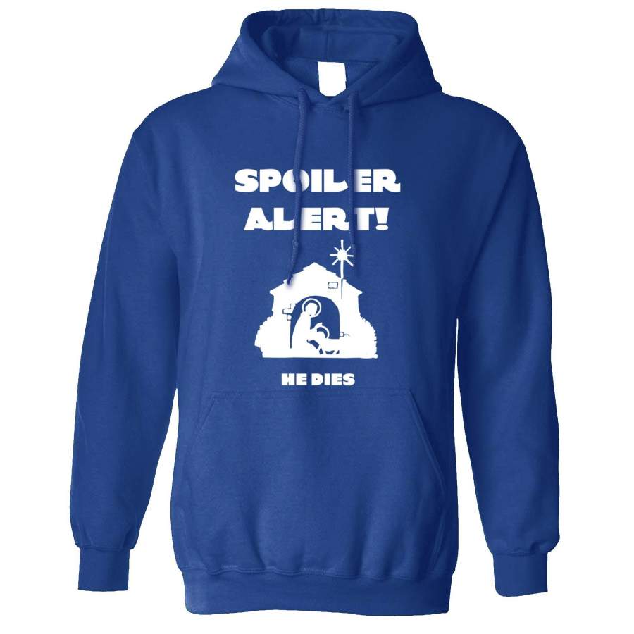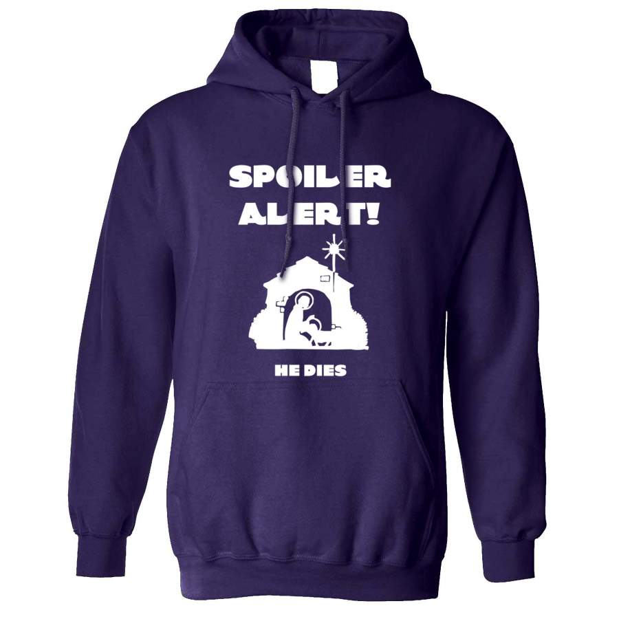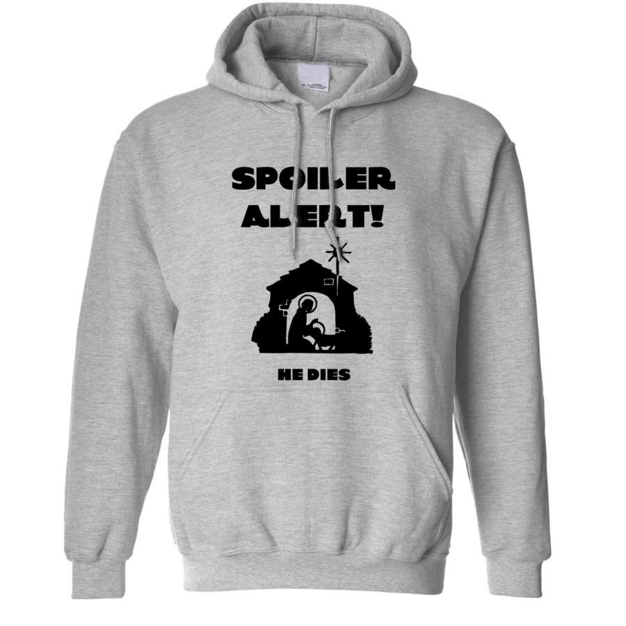 Joke Christmas Hoodie Spoiler Alert He Dies Nativity Hooded Jumper
