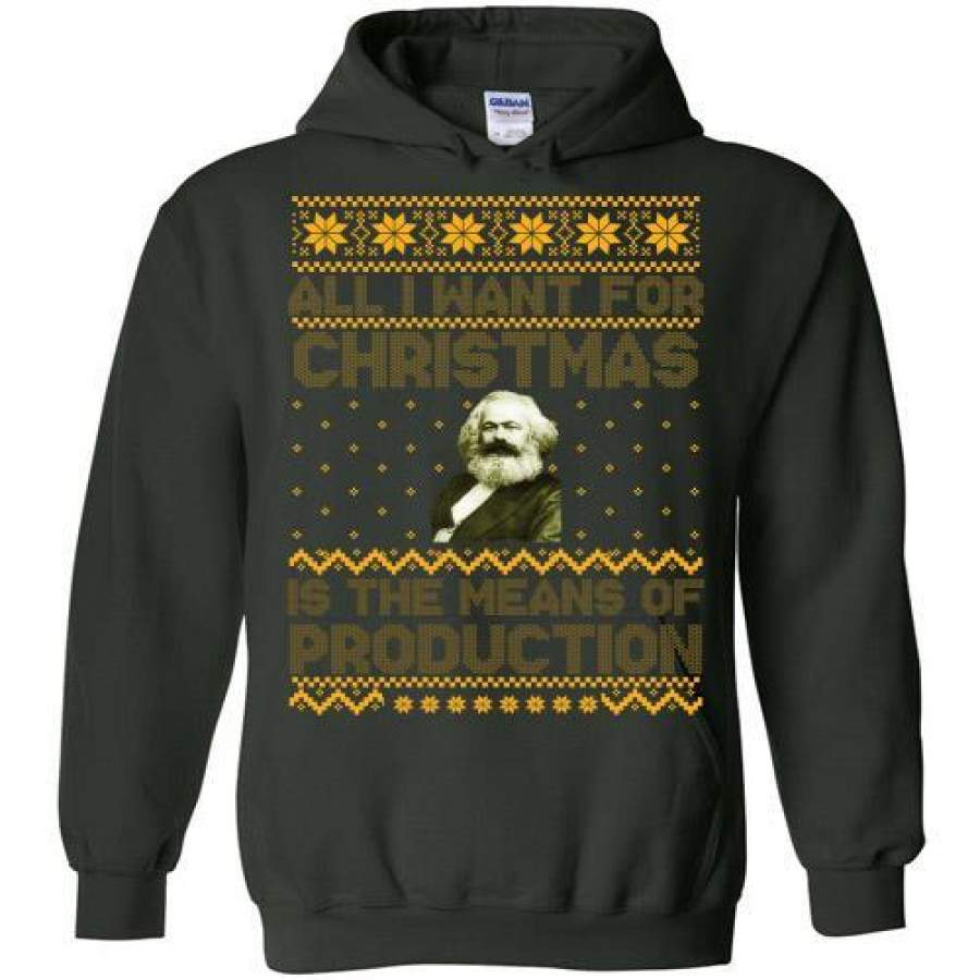 Karl Marx All I One For Christmas Is The Means Of Production Christmas Hoodie