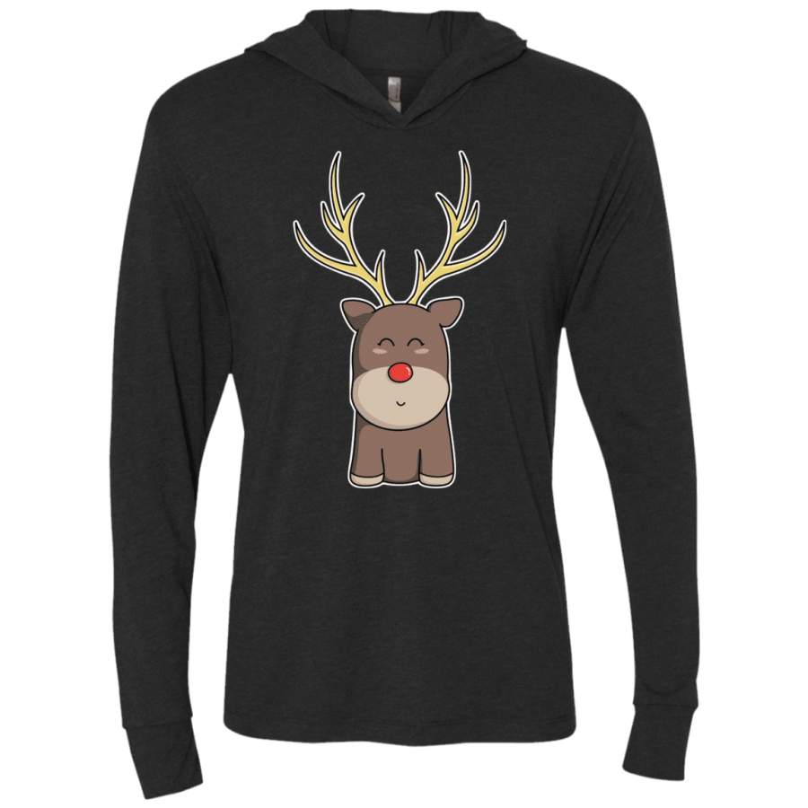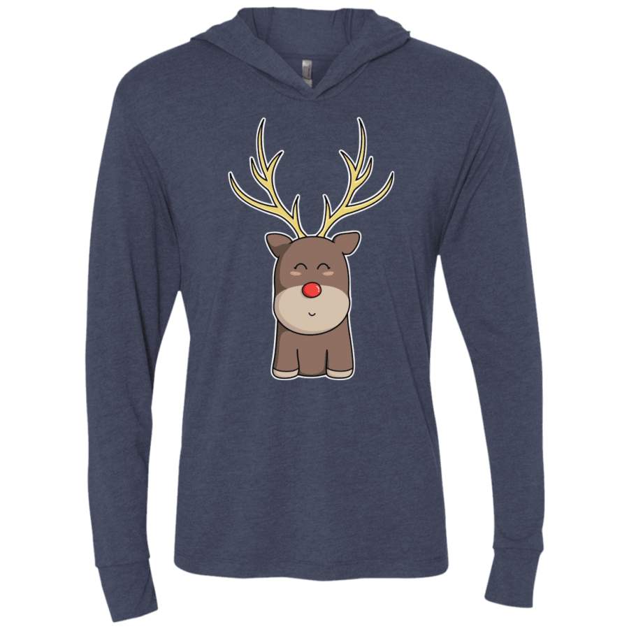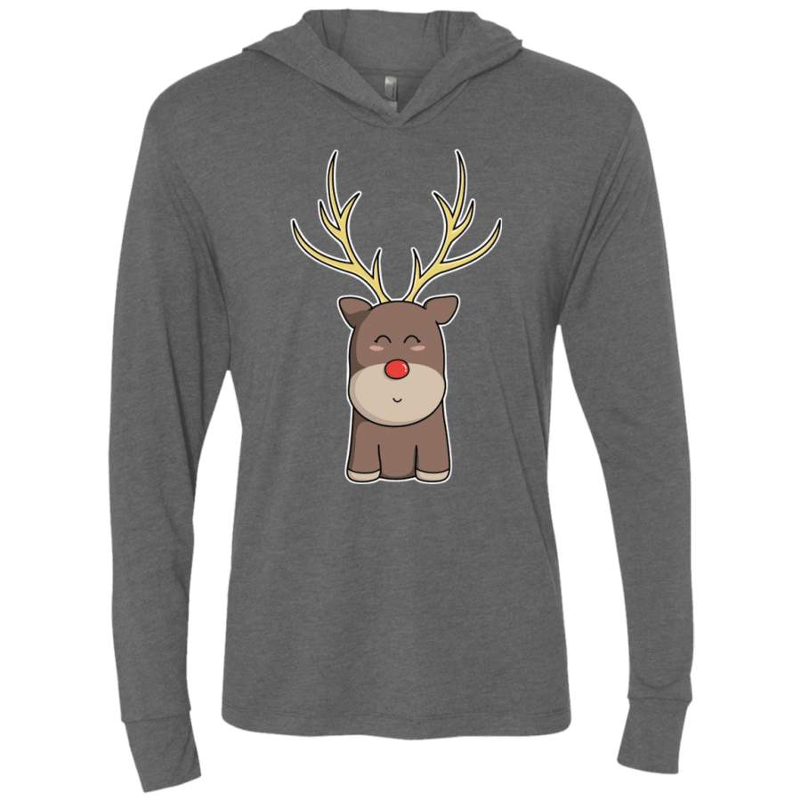 Kawaii Christmas Reindeer Triblend Long Sleeve Hoodie Tee