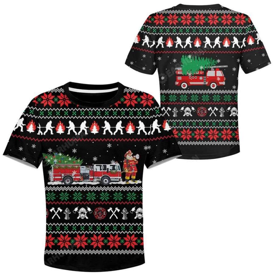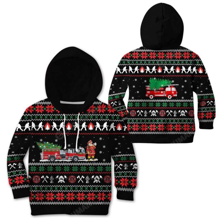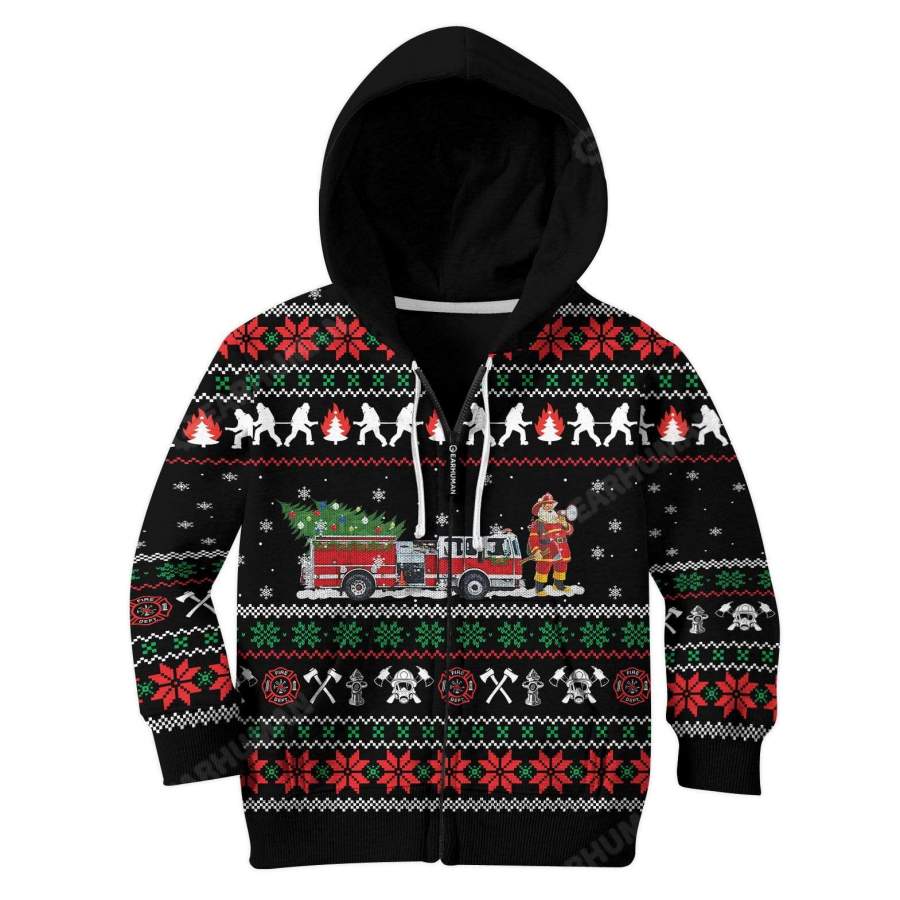 Kid Ugly Christmas Firefighter Custom Tshirt Hoodies Apparel
