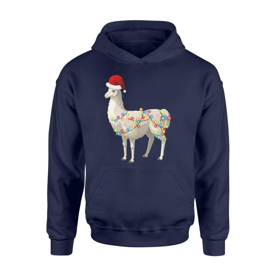 Llama Santa Christmas Light T Shirt – Standard Hoodie