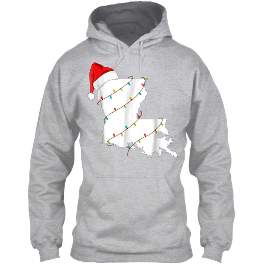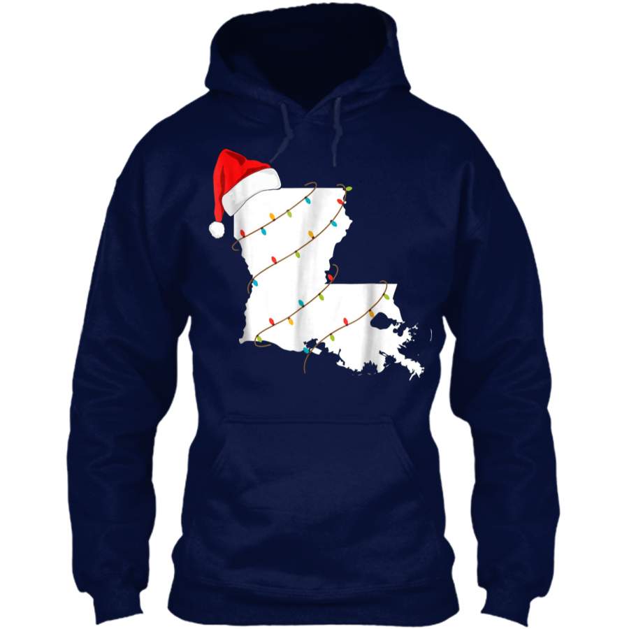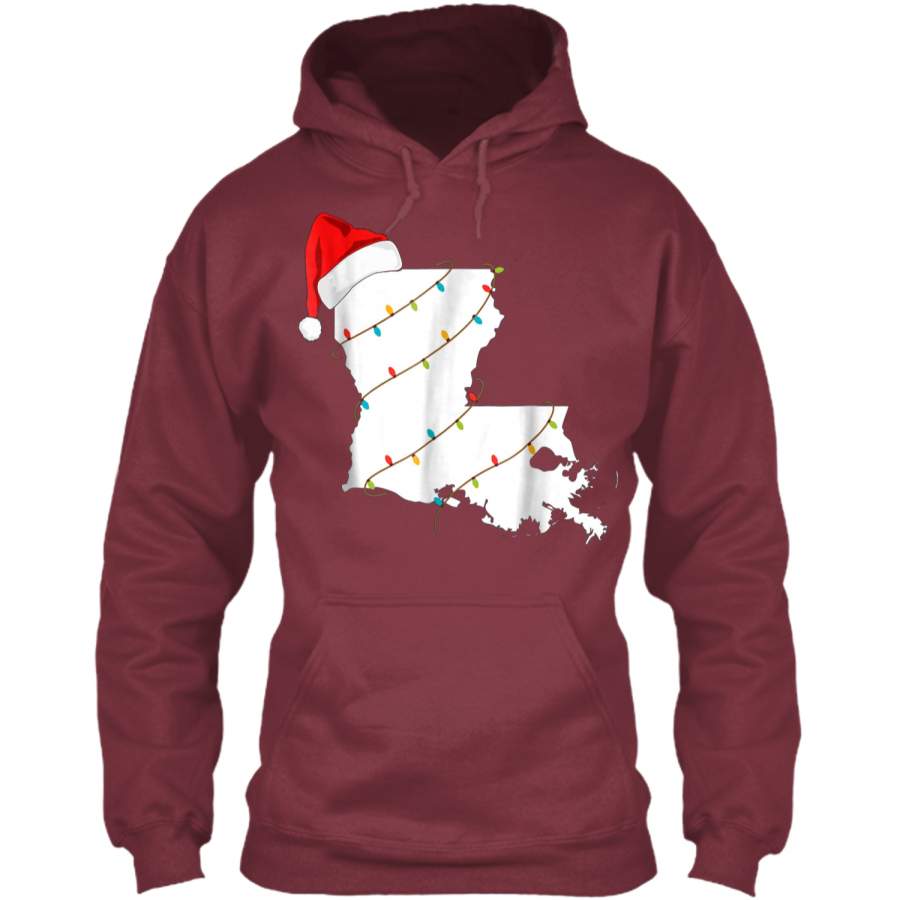 Louisiana Map Christmas With Santa Hat Xmas Lights Pullover Hoodie Christmas Gift Ideas