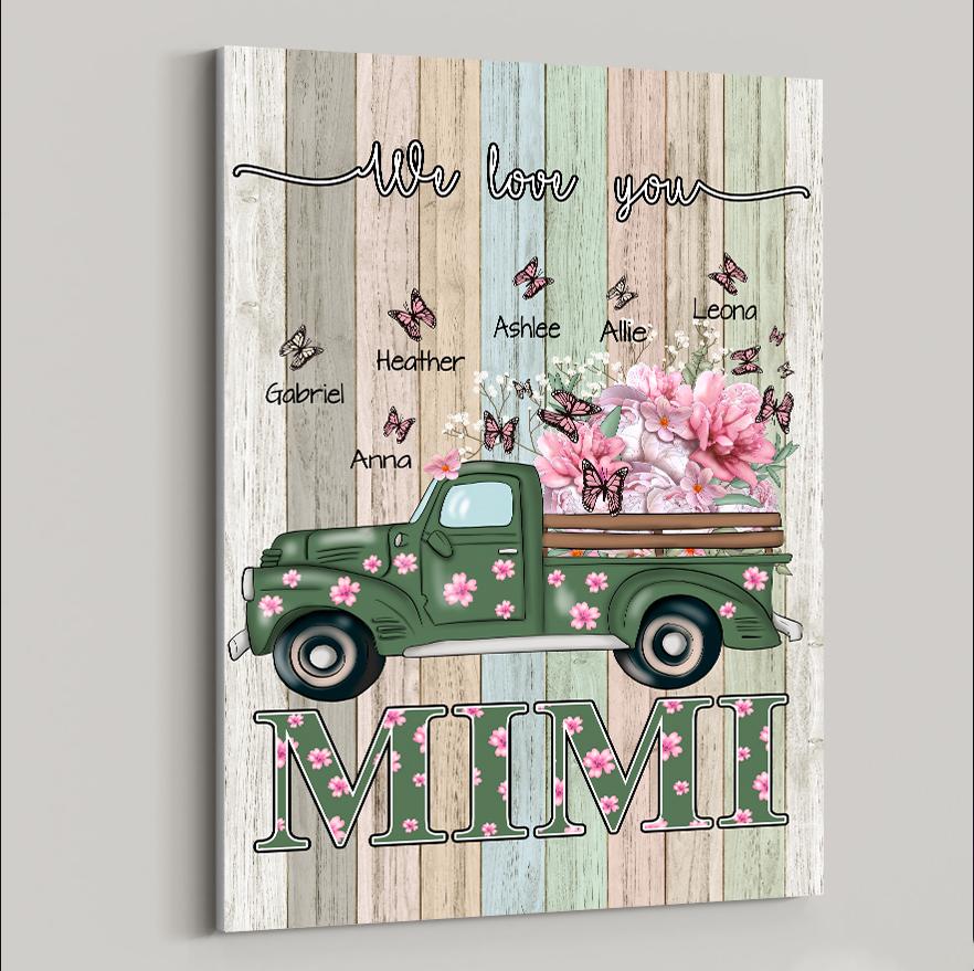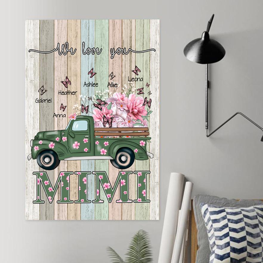 Lovelypod – We love you Mimi truck flower with grandkids name, Family Canvas, Poster Canvas Print Wall Art,Grandma Posters