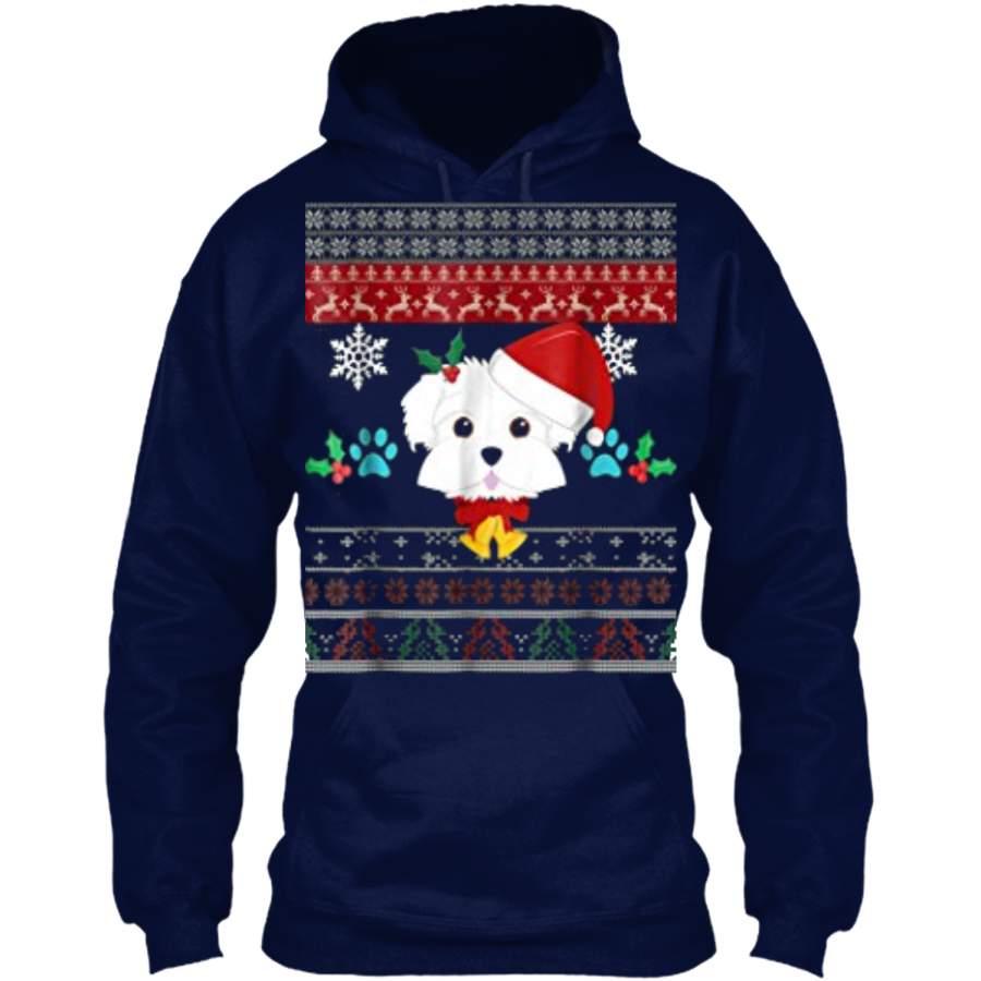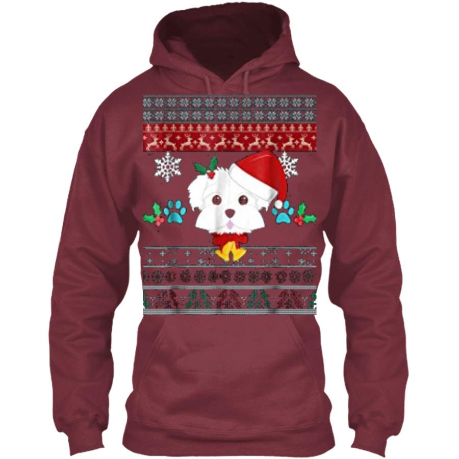 Maltese Christmas Sweater Style T Shirt Pullover Hoodie 8 oz