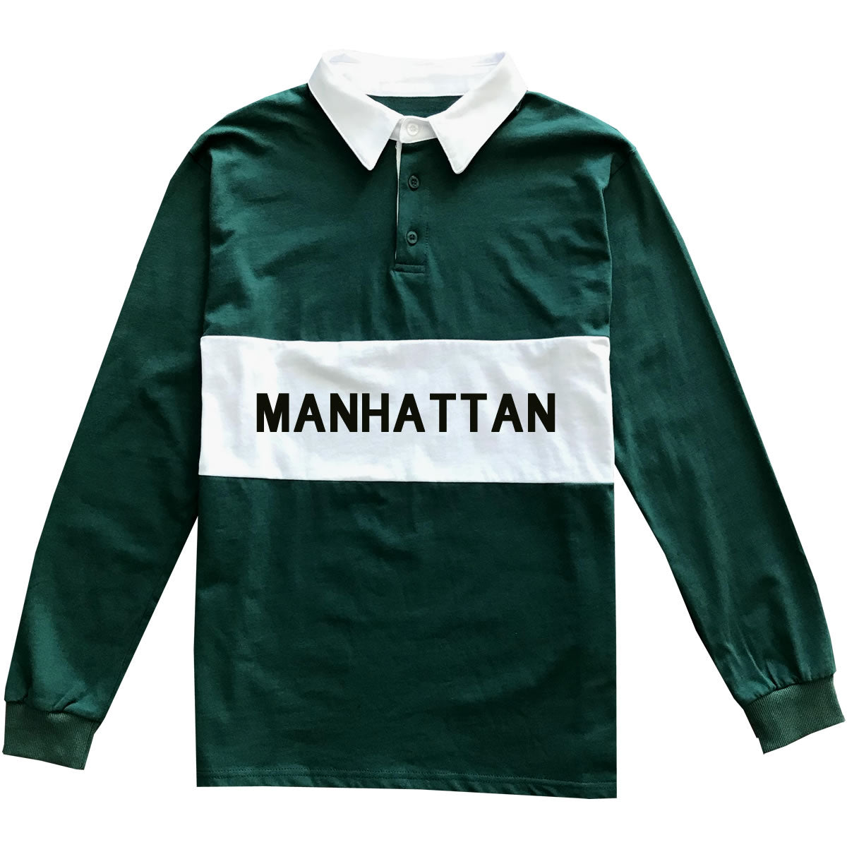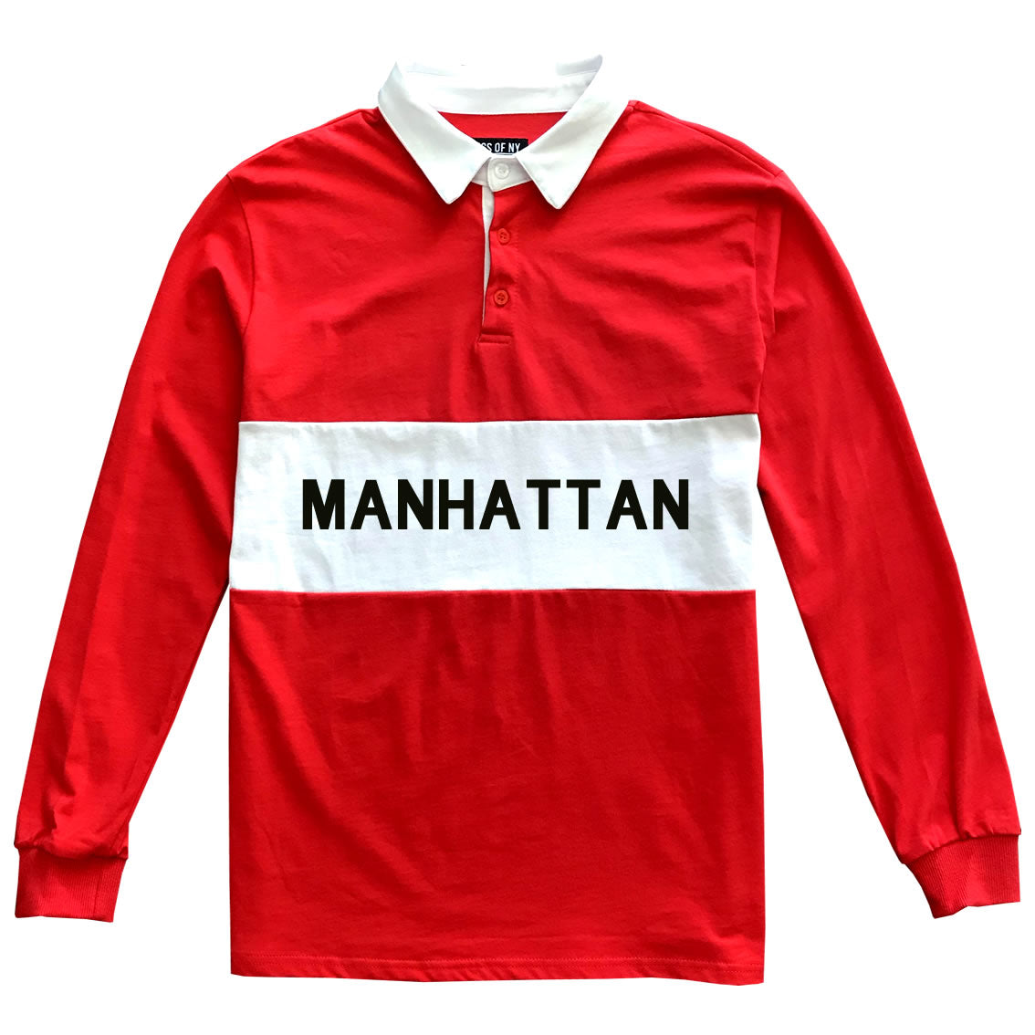Manhattan New York Striped Mens Long Sleeve Rugby Shirt