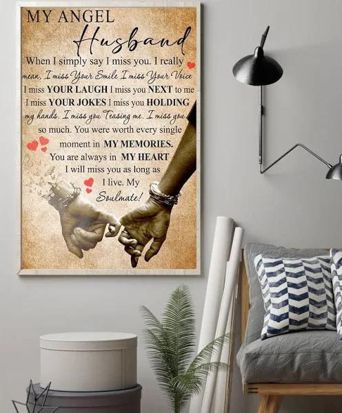 Memorial Gift My Angel Husband When I Simply Say I Miss You Heaven Portrait Poster & Canvas Gift For People Home Decor Wall Art Visual Art